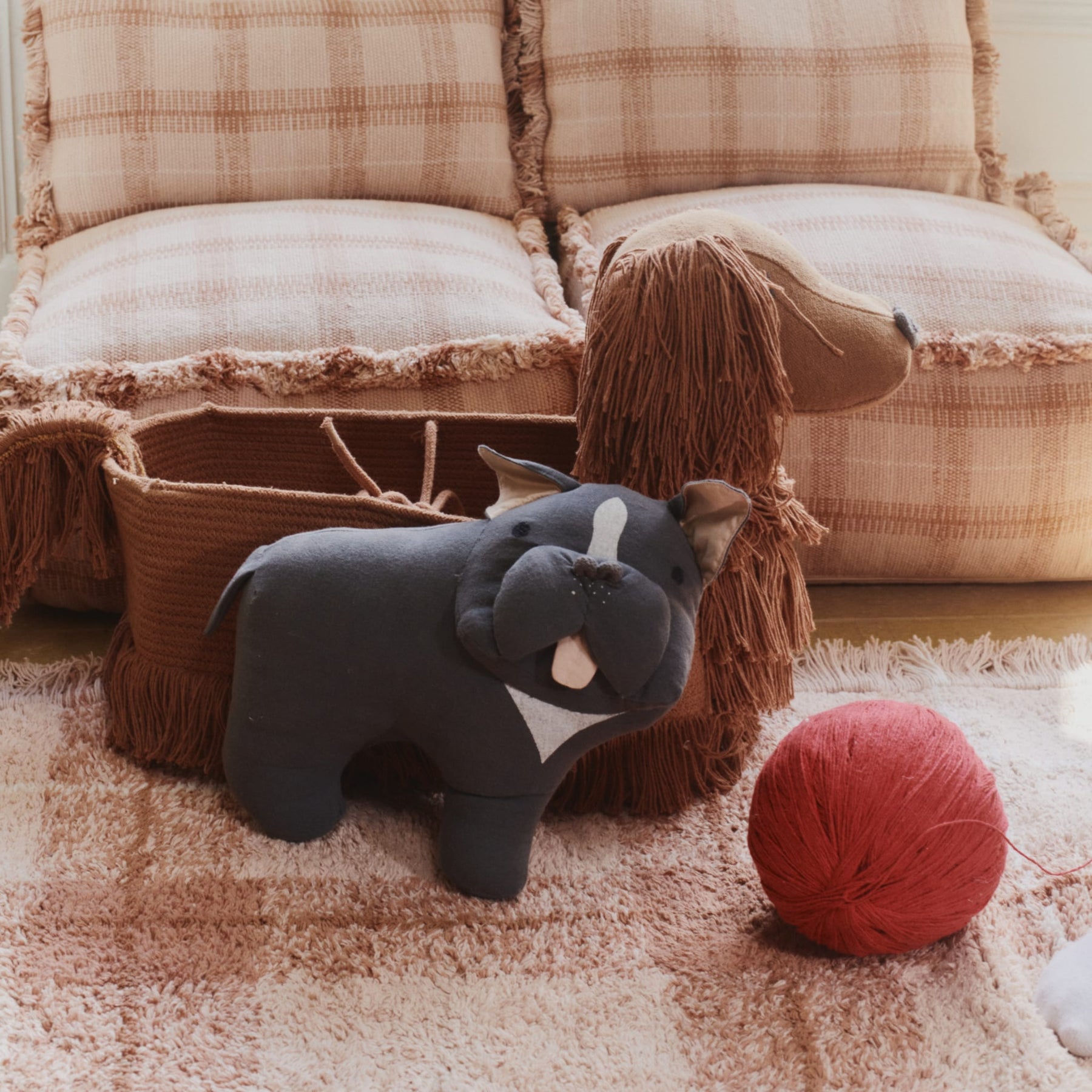 Dieses lustige und kuschelige Kissen ist inspiriert von der charmanten Silhouette eines echten French Bulldogs. Hergestellt aus weichem Baumwollstoff mit hellem Graumuster, bringt Jimmy spielerischen Charme in jedes Kinderzimmer oder Wohnzimmer.