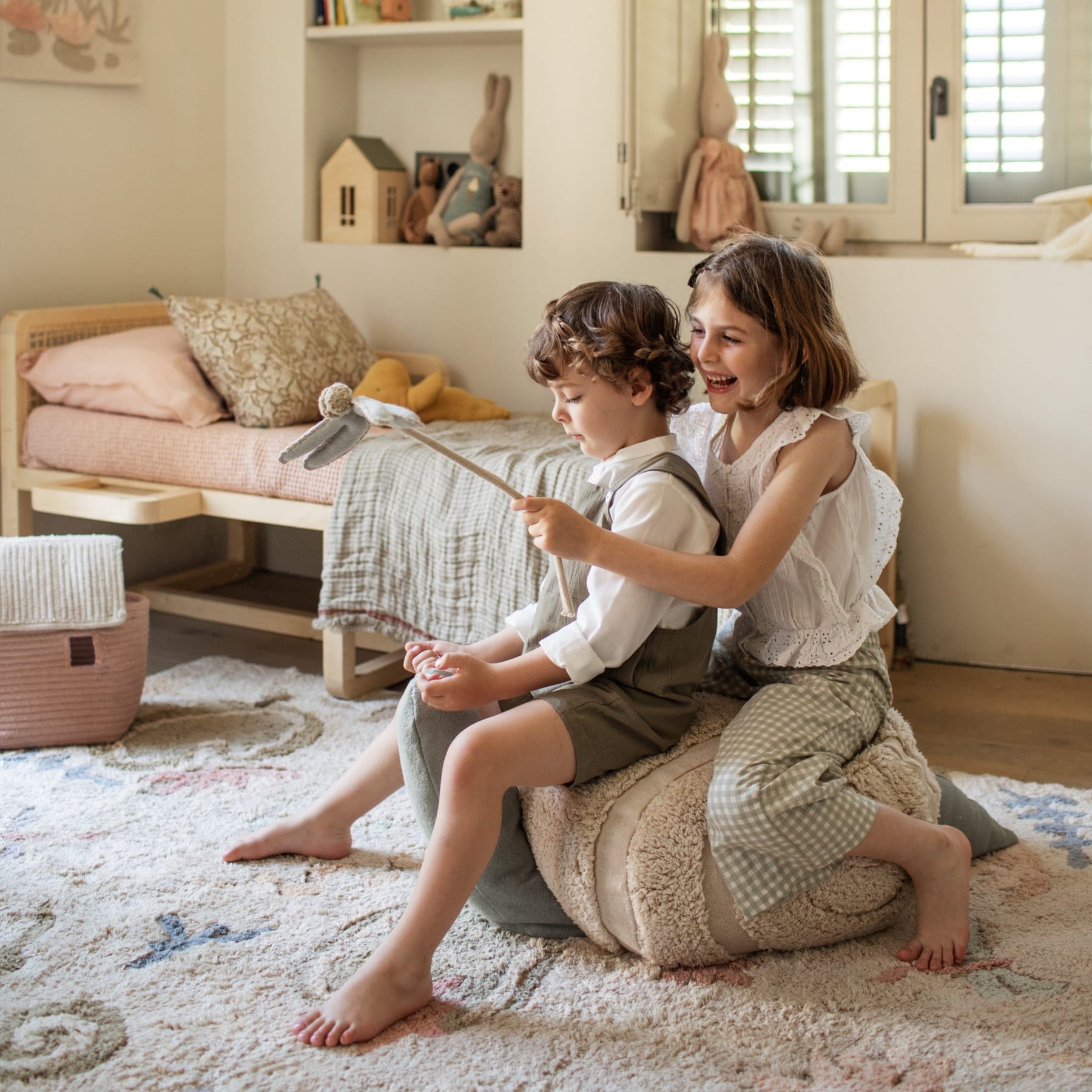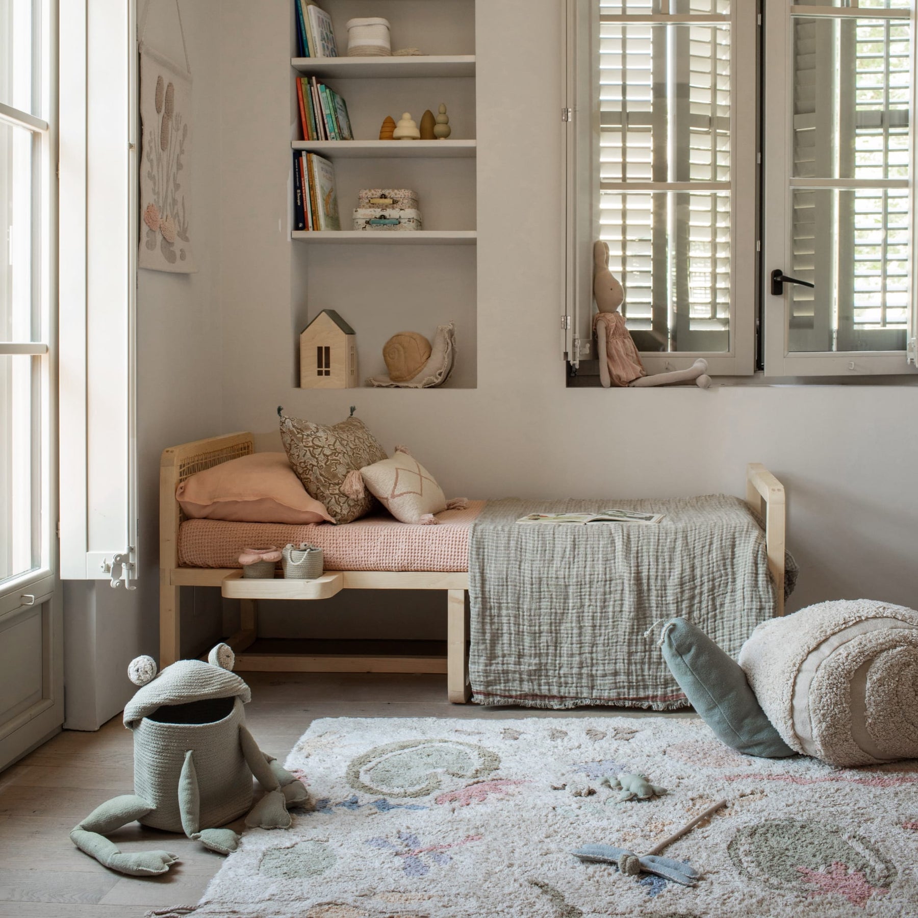 Das kuschelige Sitzkissen für Kinder in lustiger Schneckenform "Mr. Snail" von Lorena Canals bietet eine weiche Sitzfläche der besonderen Art und ist genau das Richtige für Kinderzimmer. Sein Körper ist mit weichem Schaumstoff und das Schneckenhaus mit Styroporperlen gefüllt, was es zum Sitzen komfortabel macht. Ihr Kind kann problemlos lange bequem darauf sitzen, während es spielt. Der Kinderhocker in einem verwaschenen Blau ist ein Highlight in jedem Kinderzimmer und seinen verspielten und außergewöhnlichen Look werden besonders die Kleinen lieben. Er ist eine schöne Deko und sieht im Spielzelt, auf dem Bett oder in der Kuschelecke niedlich aus, sorgt für Gemütlichkeit und gibt dem Kinderzimmer ein Gefühl von Geborgenheit. Herr Schnecke verfügt über einen Reißverschluss, um die Füllung vor dem Waschen zu entfernen.