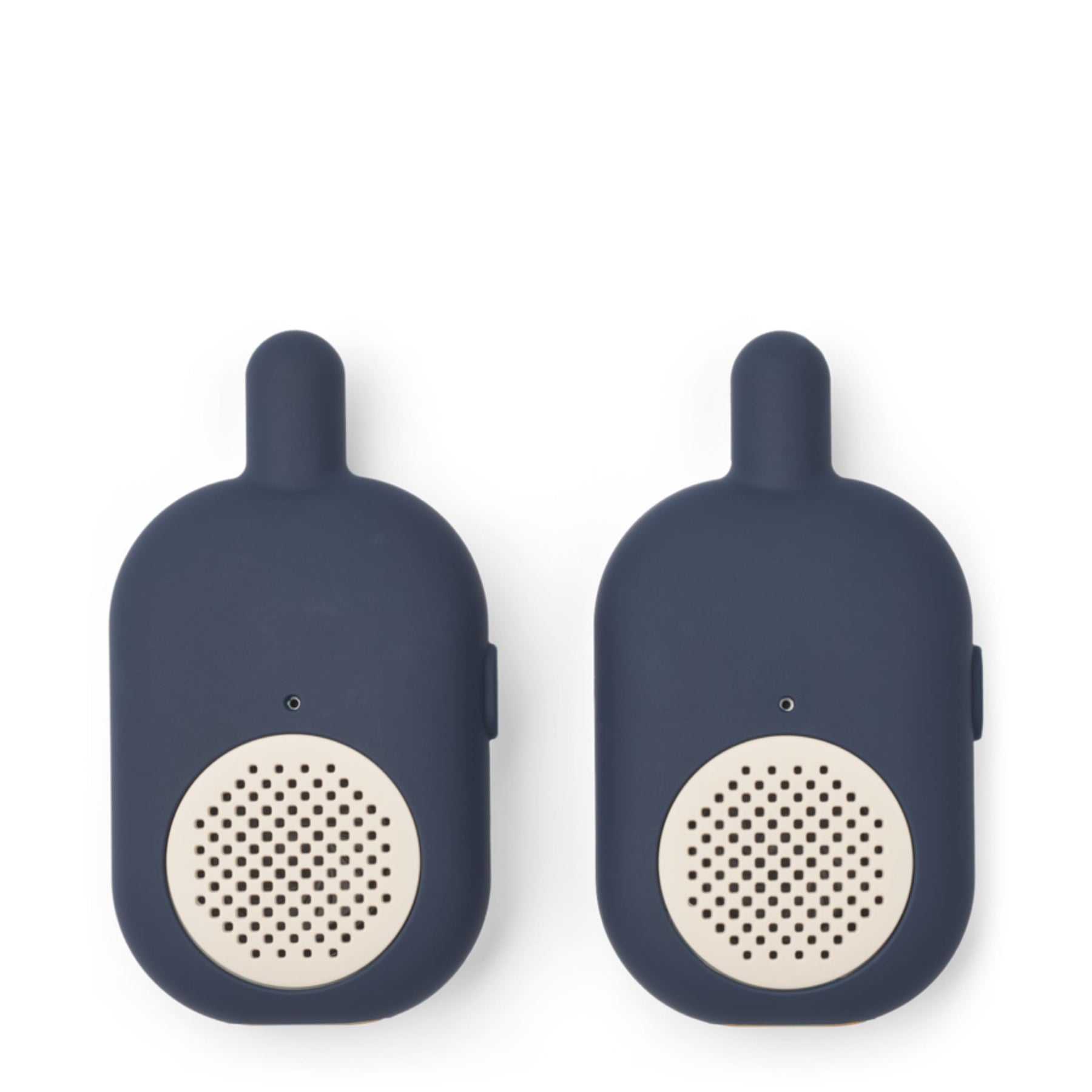 Dieses einfache Walkie-Talkie-Set von Liewood für Kinder sorgt für jede Menge Spaß und fördert interaktives Spielen. Dank des weichen Silikonrahmens liegen die Geräte angenehm in kleinen Händen und sind ideal für kleine Detektive, Abenteurer und Entdecker.