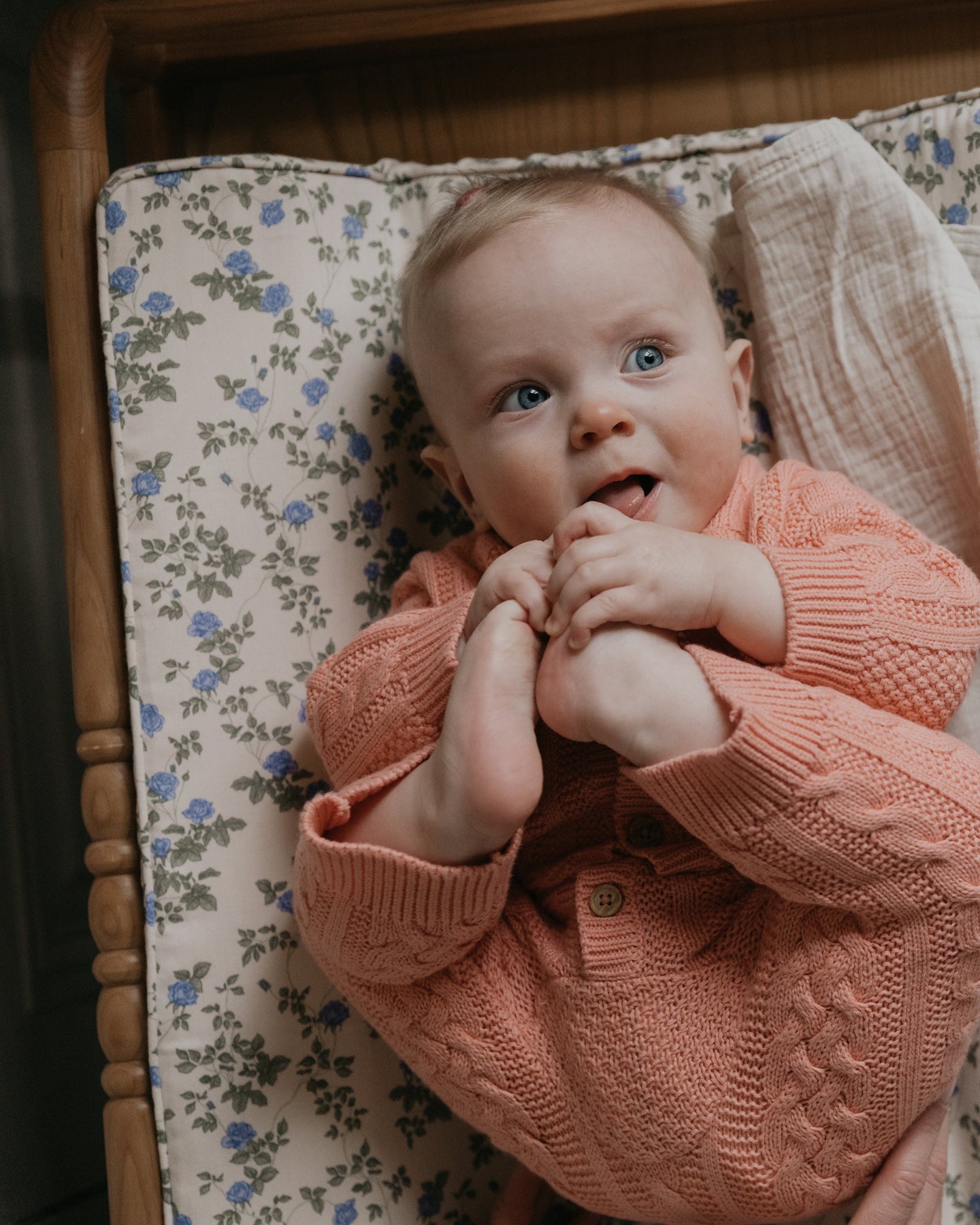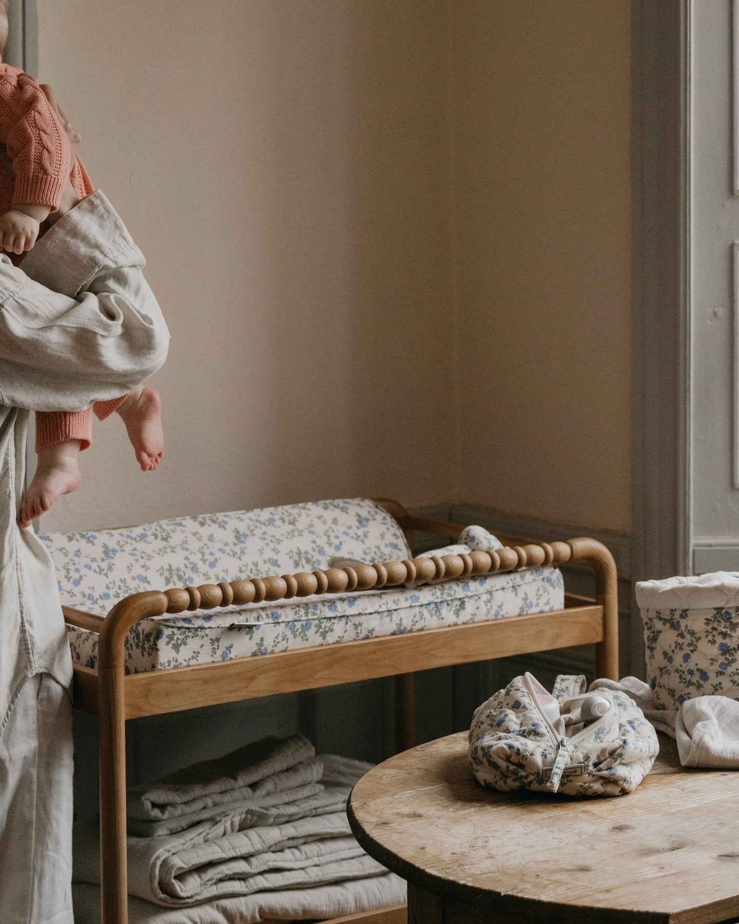 Das Wickeln gehört zu den alltäglichen Ritualen frischgebackener Eltern. Die Wickelauflage "Dainty" von Garbo&Friends ist dabei unverzichtbar. Mit ihrer weichen Polsterung und den erhöhten Rändern bietet sie dem Baby Komfort und optimale Sicherheit. Der Schaumstoffkern sorgt für eine angenehme Liegefläche, während der abwischbare Baumwollbezug mit Bionic Finish besonders pflegeleicht ist. Ein langlebiges Must-have für die Erstausstattung, das Funktionalität und Ästhetik vereint.