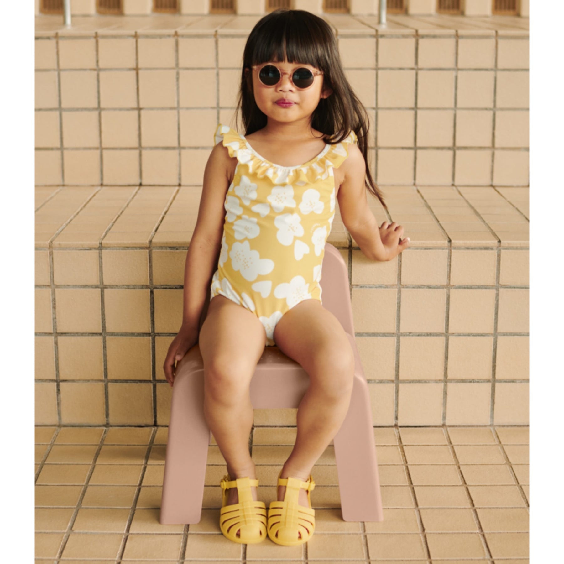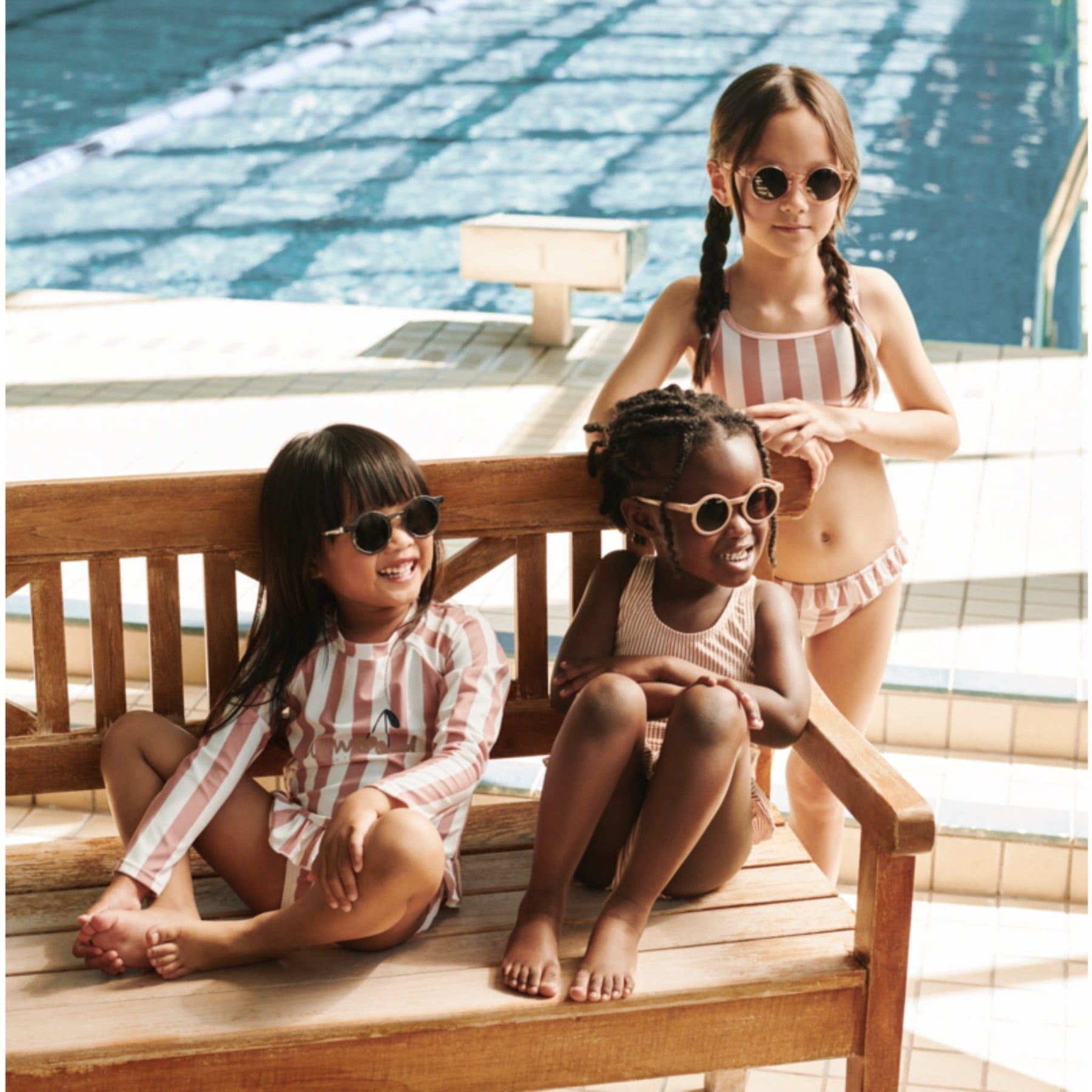 Die trendige Sonnenbrille “Darla Rose transparent” von Liewood sorgt für den ultimativen Schutz von Kinderaugen in stylischem Design. Die runde Form verleiht jedem Outfit einen verspielten Retro-Look und zieht dabei die Blicke auf sich. Aus haltbarem, recyceltem Polycarbonat gefertigt und mit polarisierten TAC-Gläsern ausgestattet, bietet die Brille nicht nur Stil, sondern auch höchste Funktionalität und Langlebigkeit. Die Federscharniere sorgen für einen optimalen Tragekomfort. Auf der Außenseite des Bügels steht das dezente Liewood-Logo in Silber geschrieben. Die Sonnenbrille wird in einem praktischen Etui geliefert, so dass man sie auch unterwegs leicht mitnehmen kann.