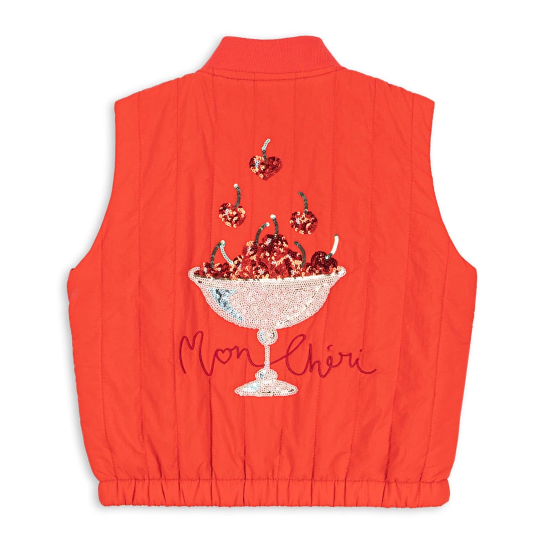 Die Weste ist mit einer atmungsaktiven, fluorfreien Imprägnierung ausgestattet, die sie windabweisend und wasserabweisend macht – perfekt für den Alltag, den Kindergarten oder Outdoor-Abenteuer. Ein besonderes Highlight sind die dekorativen Pailletten, die der funktionalen Thermoweste einen verspielten, stilvollen Akzent verleihen.