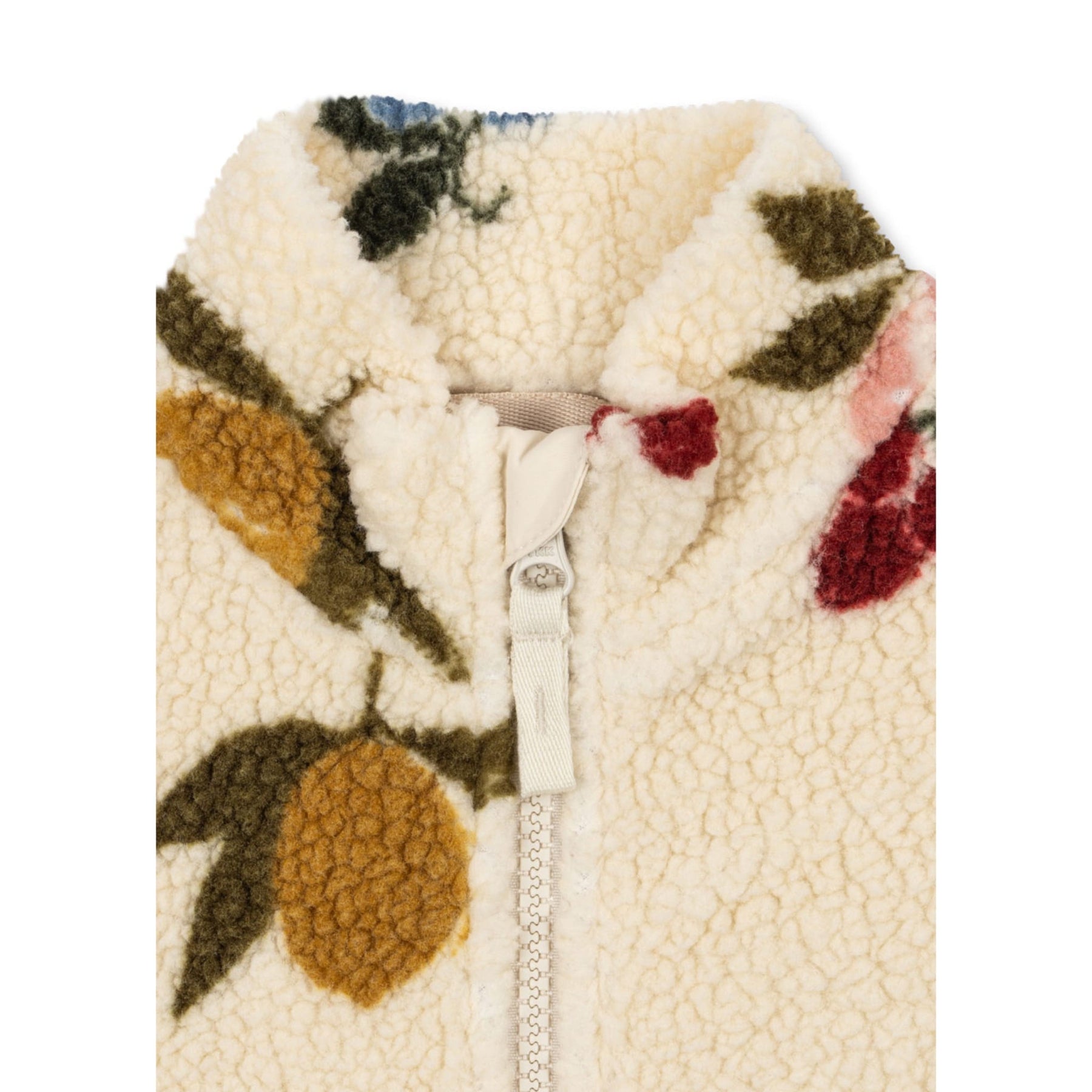 Die warme Fleecejacke von Konges Sløjd vereint funktionalen Komfort mit nachhaltigem Design. Dank der weichen Innenseite bietet sie angenehme Wärme an kühleren Tagen. Der hohe Kragen und die elastischen Ärmelbündchen schützen zusätzlich vor Wind und Kälte. Durch den durchgehenden Frontreißverschluss lässt sich die Jacke einfach an- und ausziehen – ideal für Alltag und Outdoor-Aktivitäten.Diese Jacke ist vollständig aus recyceltem Polyester gefertigt und eignet sich perfekt für umweltbewusste Käufer:innen, die nicht auf Qualität und Komfort verzichten möchten.