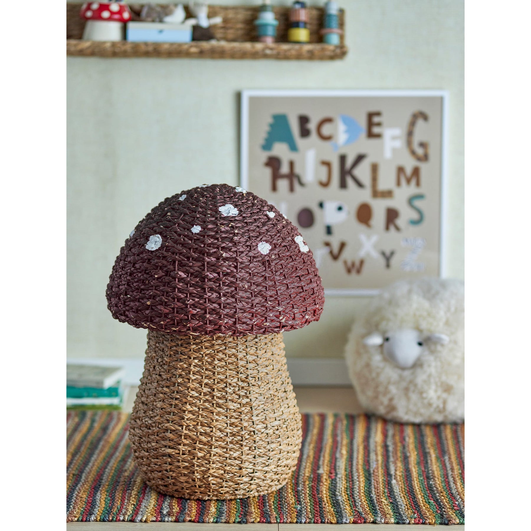 Der pilzförmige Aufbewahrungskorb "Corintha" von Bloomingville Mini eignet sich ideal zur Aufbewahrung von Spielzeug oder Kinderwäsche, wobei der Deckel in Form eines Pilzkopfes für staubfreies und ordentliches Verstauen sorgt. Das Aufräumen wird somit zum Kinderspiel, da ausreichend Platz vorhanden ist. Neben seiner praktischen Funktion trägt dieser Spielzeugkorb auch zu einem ästhetischen Erscheinungsbild im Kinderzimmer bei und fügt sich harmonisch in die restliche Inneneinrichtung ein. Hergestellt aus Seegras, verleihen die sanften Braun- und Rottöne eine angenehme und naturinspirierte Atmosphäre im Raum.