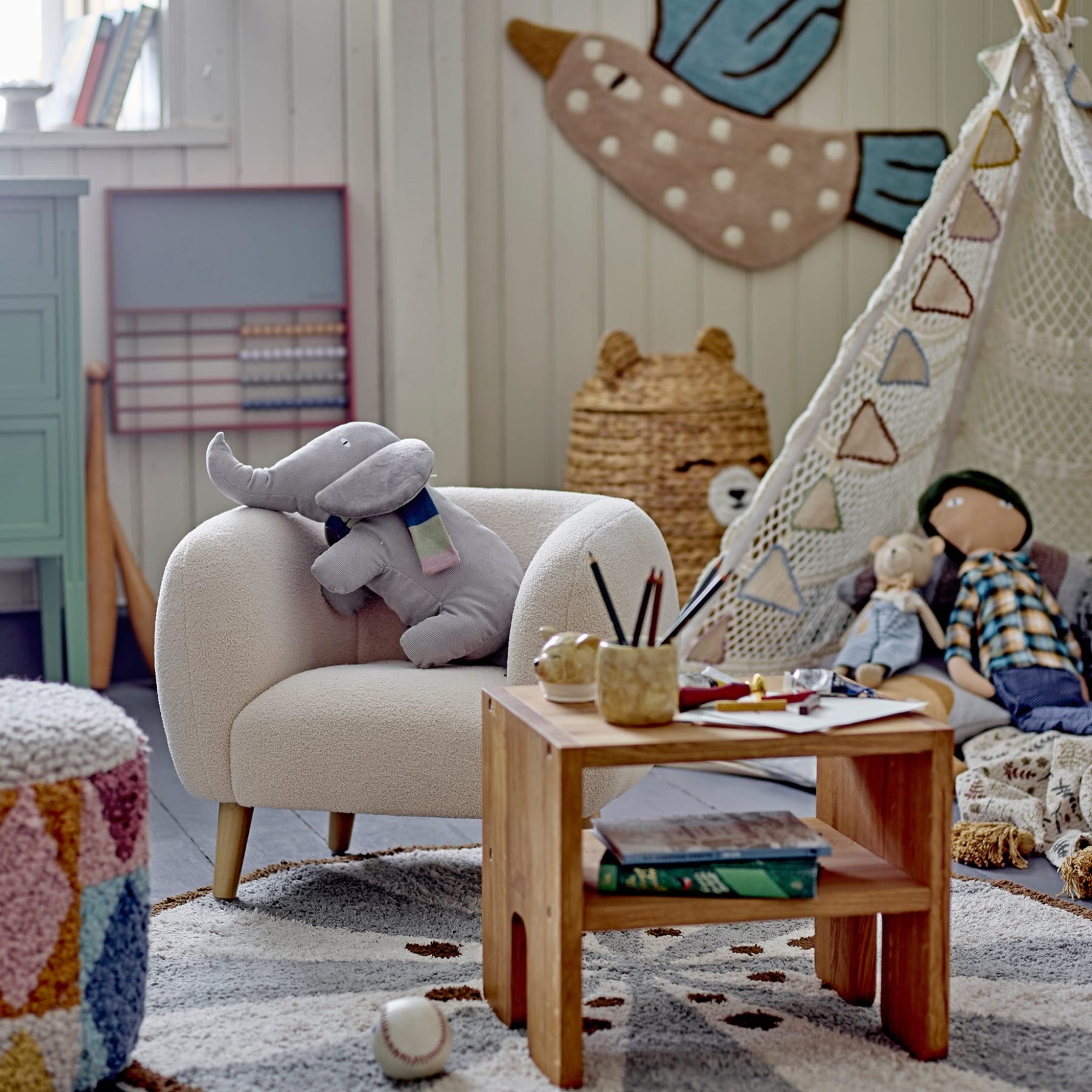 Der Loungesessel Cade von Bloomingville MINI ist für die kleinsten Familienmitglieder konzipiert. Der kleine, weiche Sessel ist perfekt, um dem Kind einen eigenen Platz im Wohnzimmer zu geben oder als dekoratives Element im Kinderzimmer zu dienen.