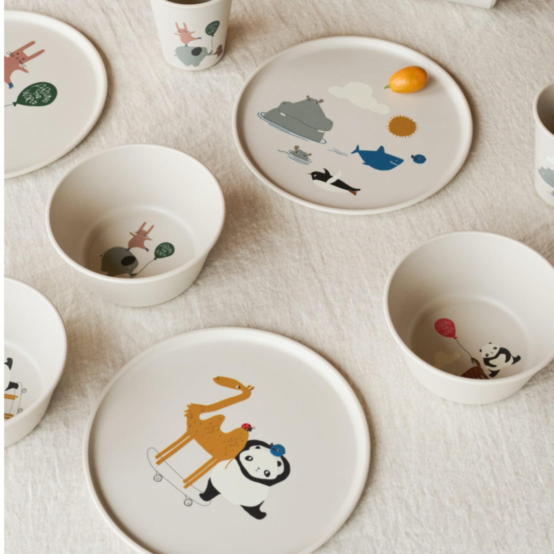 Jeder Teller ist mit liebevollen, tierischen Illustrationen in sanften Farbtönen gestaltet und bringt eine verspielte Note auf den Esstisch.
