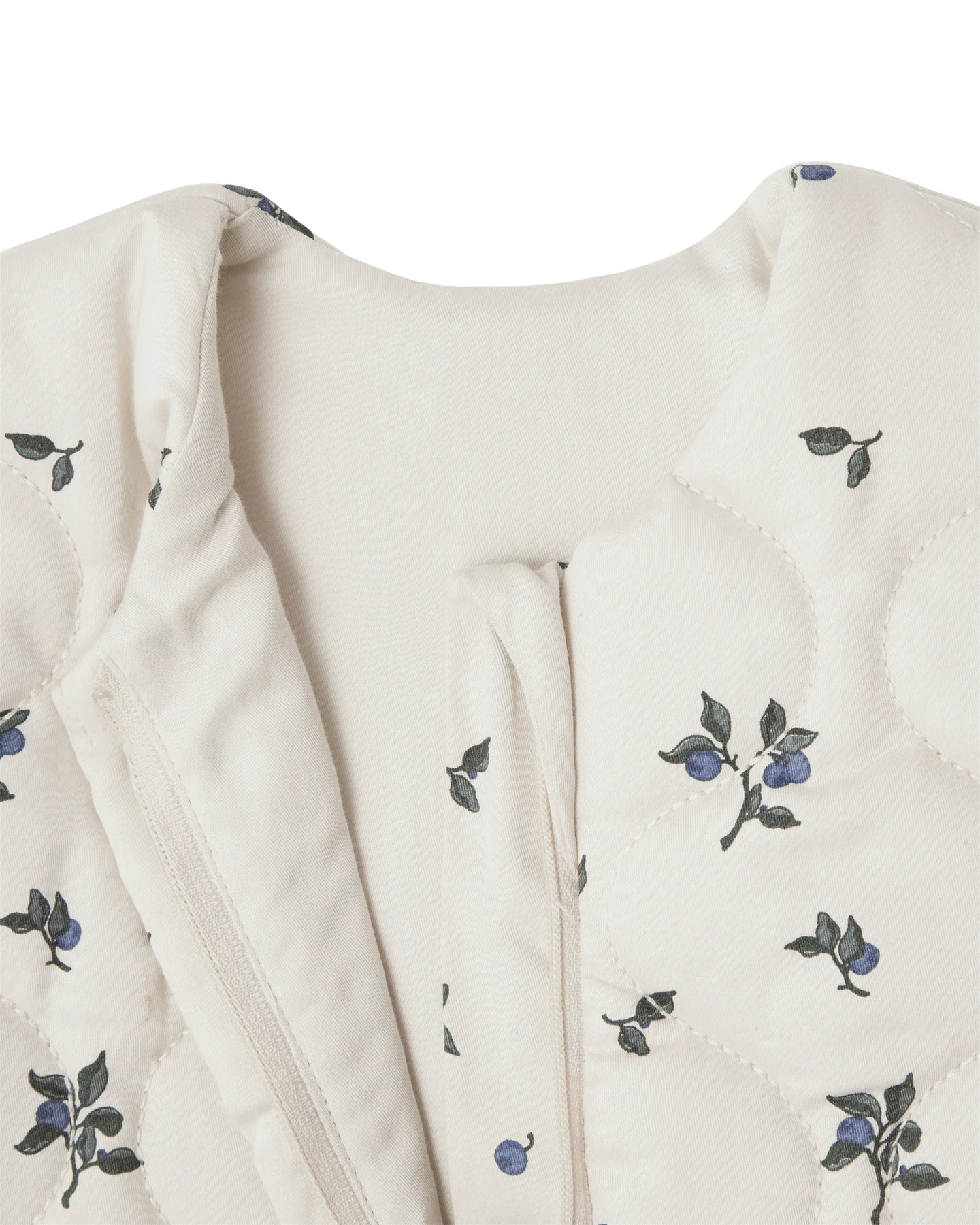 Der Babyschlafsack "Blueberry" von Garbo&Friends bietet Ihrem Baby im Alter von sechs bis achtzehn Monaten eine wohlige Wärme und Sicherheit für erholsame Nächte. Mit einem TOG-Wert von 2,5 ist er ideal für den ganzjährigen Gebrauch in Räumen mit Temperaturen zwischen 14°C und 20°C. Der verdeckte Frontreißverschluss verhindert, dass Ihr Kind sich ungewollt aufdeckt. Der Print mit den zarten Blaubeeren auf einem sanften Hintergrund schafft eine entspannende Stimmung und trägt dazu bei, dass Ihr Baby ruhig und erholsam schläft.
