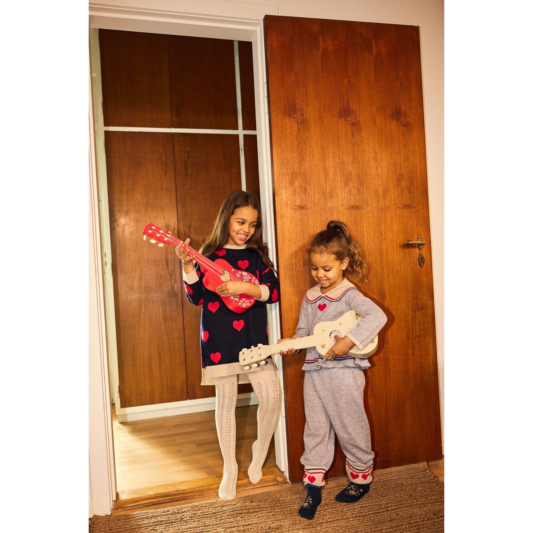 Durch Musik als universelle Sprache werden Kreativität und Selbstausdruck gefördert. Die liebevoll gestaltete Holzspielzeugukulele "Lemon" von Konges Sløjd bietet eine unterhaltsame Gelegenheit, diese Welt zu erkunden. Sie wurde speziell für Kinder entwickelt und ermöglicht es ihnen, die Freude an der Musik zu entdecken, während sie gleichzeitig ihre Feinmotorik und musikalischen Fähigkeiten entwickeln. Hergestellt aus FSC-zertifiziertem Sperrholz, bietet die Ukulele eine langlebige und sichere Spieloption für Ihr Kind. Ihr subtiler Beigeton und das erfrischende Zitronen-Print verschmelzen zu einem kunstvollen Holzdesign, das musikalische Kreativität und visuellen Genuss harmonisch vereint. Dieses Instrument erzeugt sanfte Resonanzen, die sowohl Anfänger als auch angehende Musiker begeistern. Ihr Kind kann mühelos die verschiedenen Akkorde und Töne erforschen und dabei ein Gefühl für Rhythmus und Melodie entwickeln.