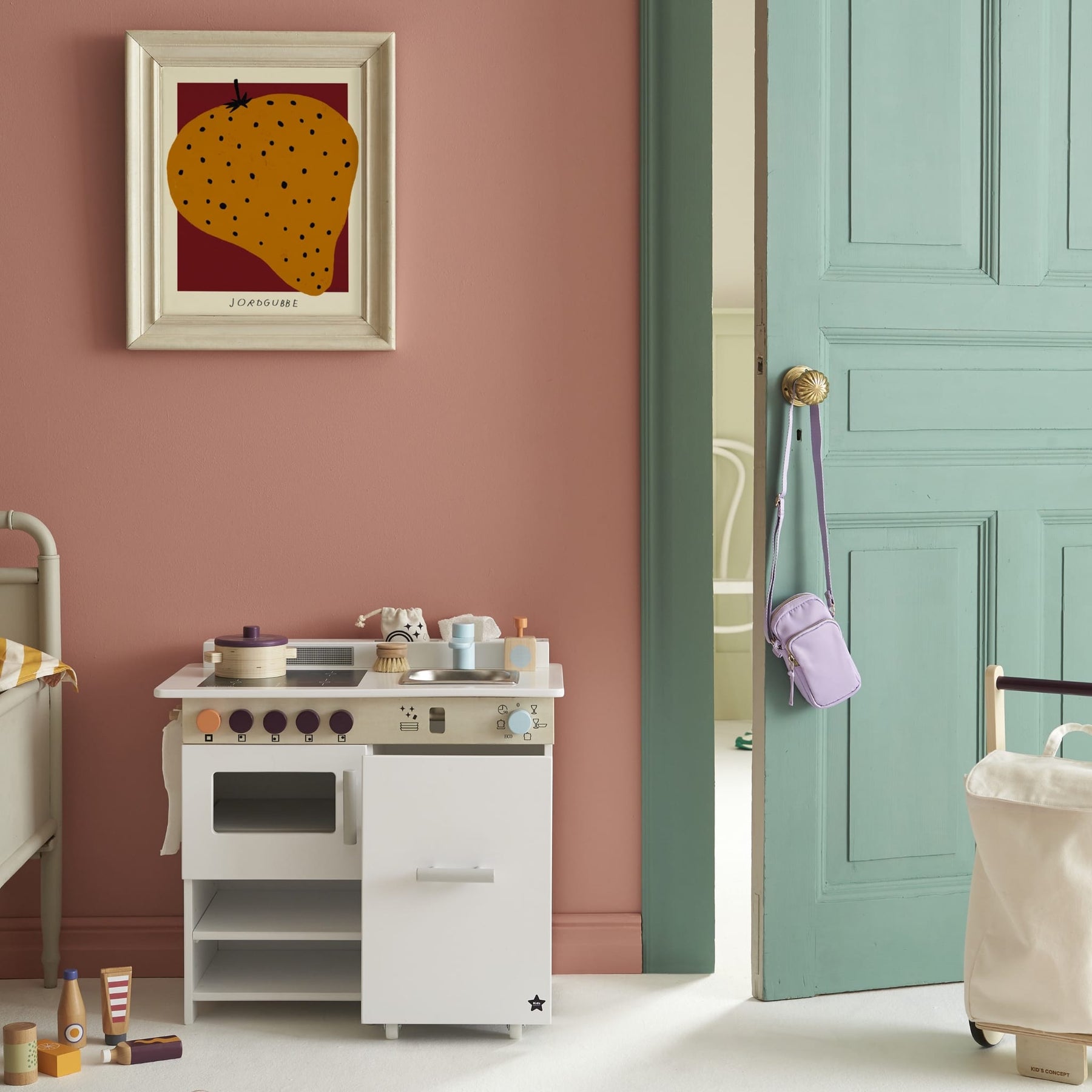 Die Kuschelfreunde kommen zum Essen? Dann lasst uns kochen! Diese moderne Spielküche mit Spülmaschine in zartem Weiß ist für die Kleinen ab 3 Jahren geeignet und enthält alles, was ein echter Koch braucht, um ein leckeres Essen zuzubereiten. Das Set von Kid´s Concept besteht aus einem Geschirrspüler, einem Handtuch, einer Spülbürste, einem Backblech, einem Spülmittel mit Pumpfunktion, zwei Spülmaschinentabs, einem Aufbewahrungsbeutel und einer integrierten Dunstabzugshaube. So können die Kleinen jetzt auf dem Herd kochen, während ihr Lieblingskuchen im Ofen backt. Und wenn das Abendessen vorbei ist, können die Kleinen das gesamte Geschirr in die Spülmaschine räumen, einen Spülmaschinen-Tab einlegen und das passende Spülprogramm einschalten. Wenn das Geschirr sauber ist, können die kleinen Köche das Geschirr einfach unter den Herd stellen oder die Spüle hochklappen und alle Küchenutensilien verstauen. Die Spielküche fördert Motorik, Hand-Augen-Koordination, Kreativität und Vorstellungskraft der Kinder und beeinflusst die soziale Entwicklung. Das Produkt ist CE-zertifiziert und erfüllt die Anforderungen aller gültigen EU-Richtlinien.