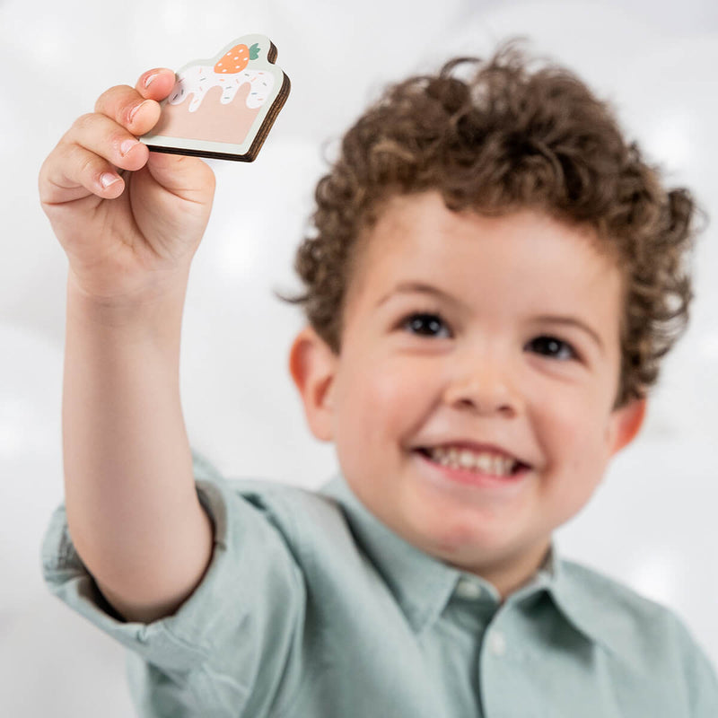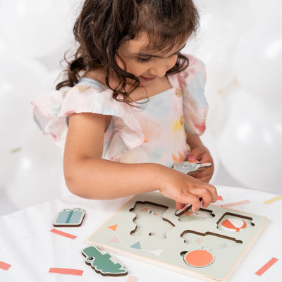 Elphee, der fröhliche Elefant, und sein bester Freund Croco, das neugierige Krokodil, laden zu einem unvergesslichen Geburtstag ein! Mit dem vierteiligen Steckpuzzle „Celebration Colour Mix“ von Done by Deer gehen die Kleinen auf eine farbenfrohe Entdeckungsreise. Jedes Puzzleteil hält eine Überraschung bereit, sei es das versteckte Geschenk oder das, was sich unter den anderen Stücken verbirgt. Spielerisch fördert dieses liebevoll gestaltete Holzpuzzle den Sinn für Formen und die Feinmotorik. Die einfachen Formen sind ideal, um die Hand-Augen-Koordination zu trainieren, das logische Denken zu schulen und die Problemlösungsfähigkeiten kleiner Entdecker zu verbessern.