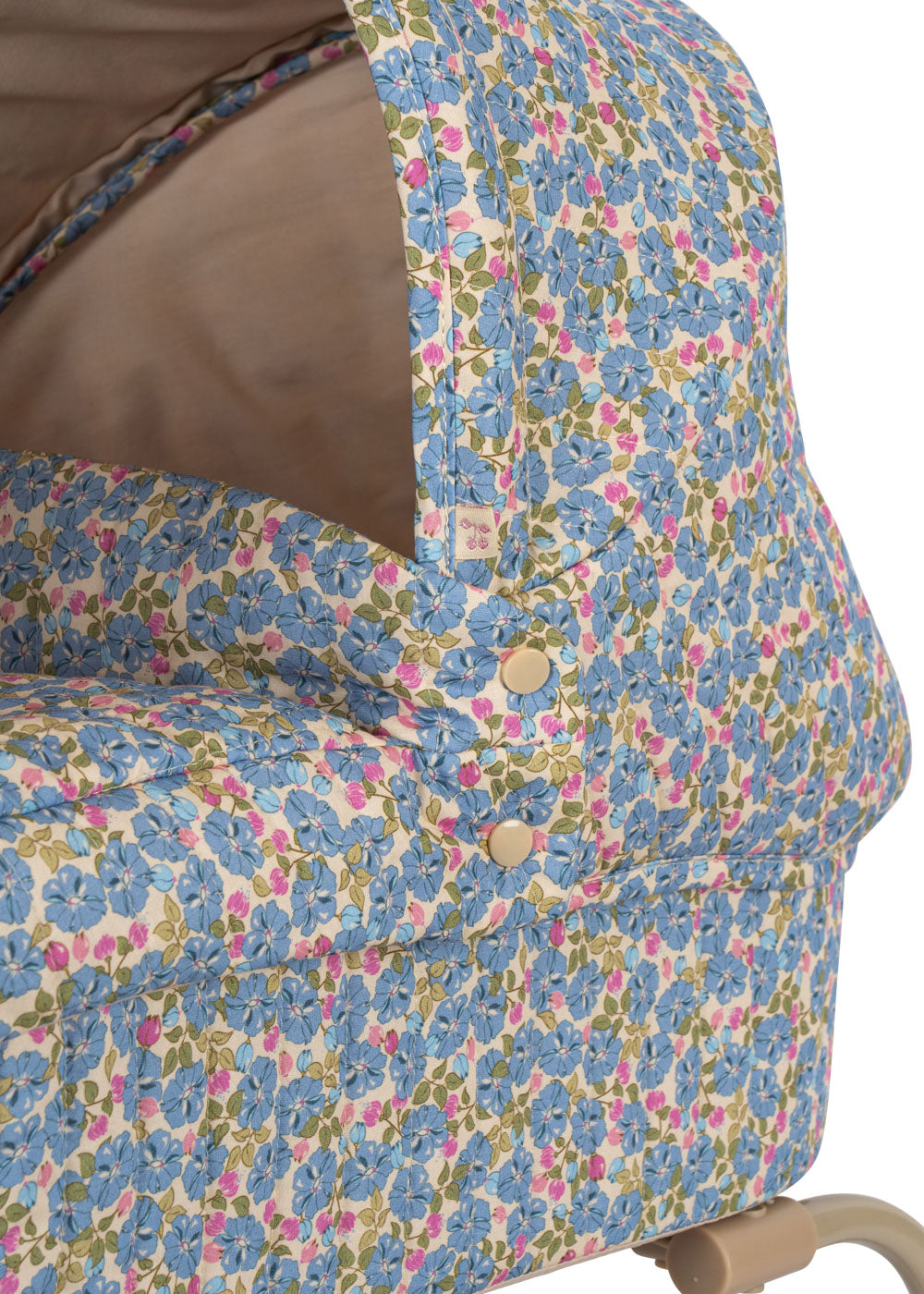 Der Vintage-Puppenwagen in kleiner Ausführung ist perfekt für kleine Puppeneltern und lässt sich spielend leicht manövrieren. Ausgestattet mit vier großen, stabilen Rädern, sorgt er für ein realistisches und sicheres Spielerlebnis. Das gestepptes Stoffdesign mit zarten Wellensaum-Kanten, ein faltbares Sonnendach und ein gepolsterter Aufbewahrungskorb unter der Liegefläche machen den Wagen besonders detailreich und liebevoll gestaltet.