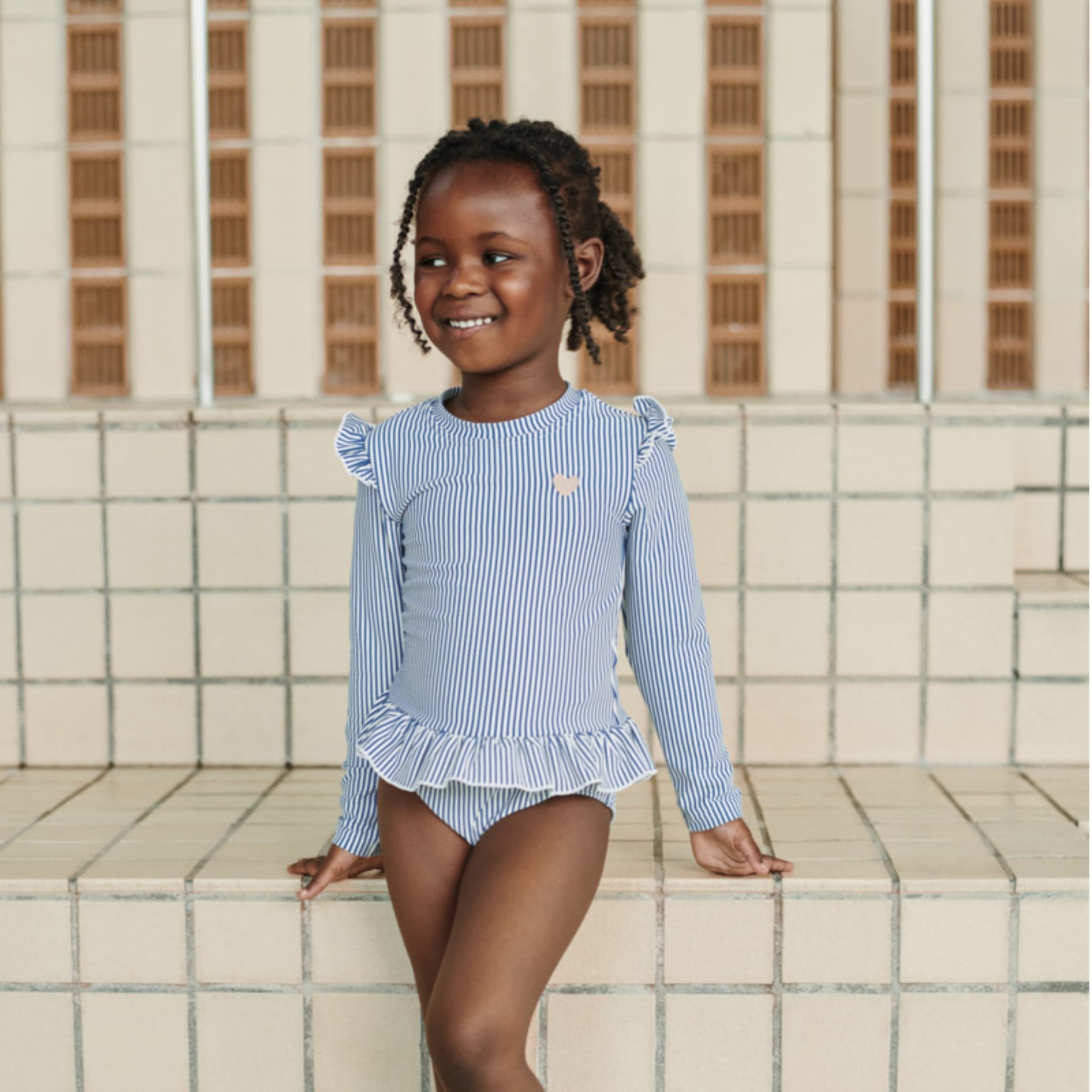 - Langärmeliger Badeanzug für Kinder mit Rüschen