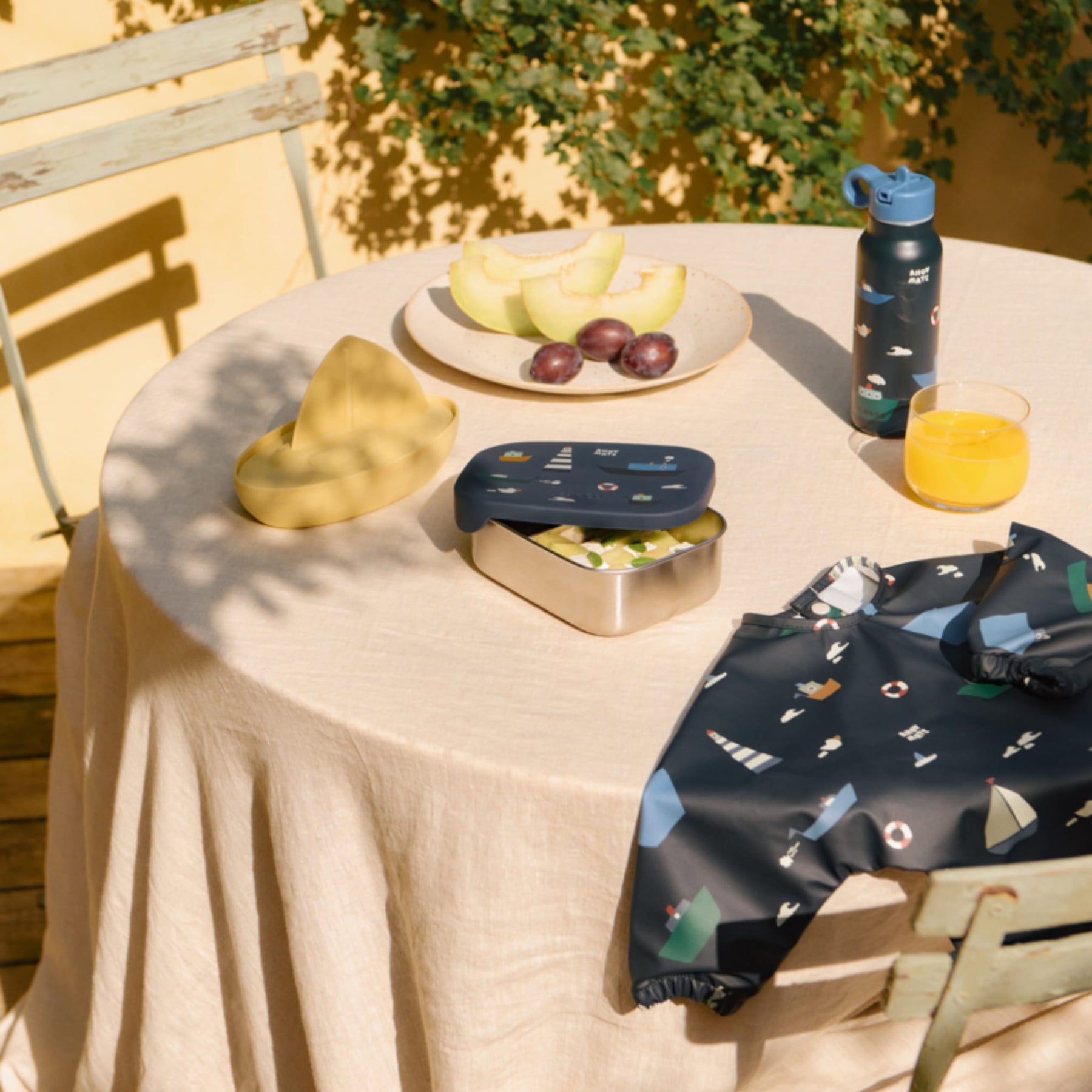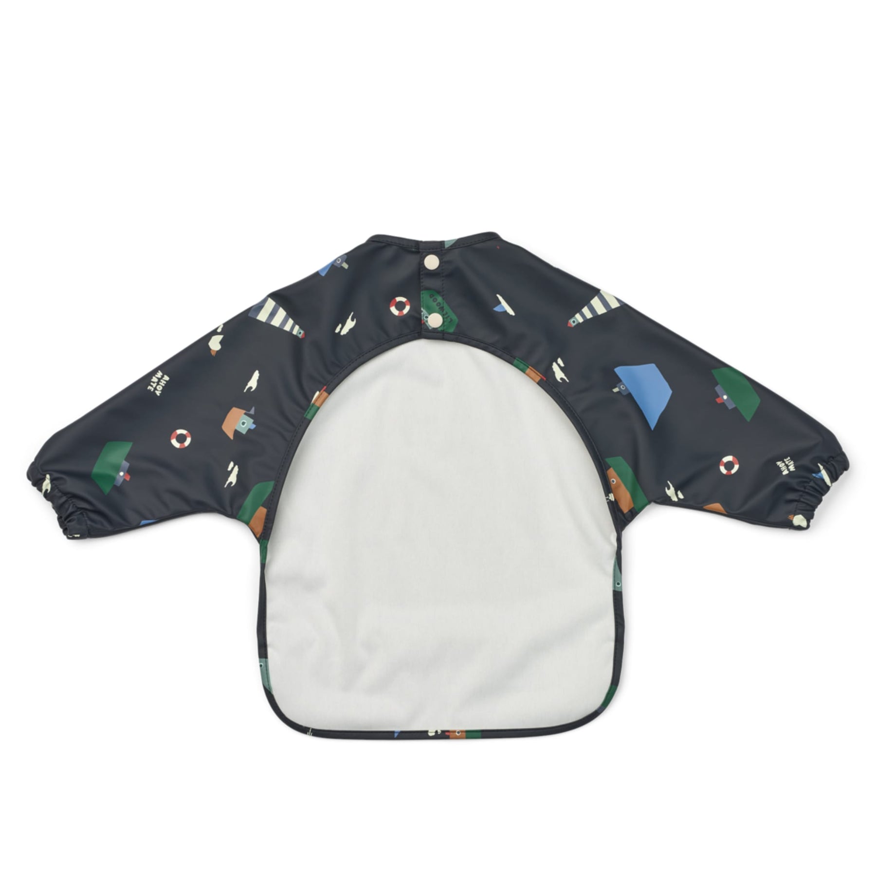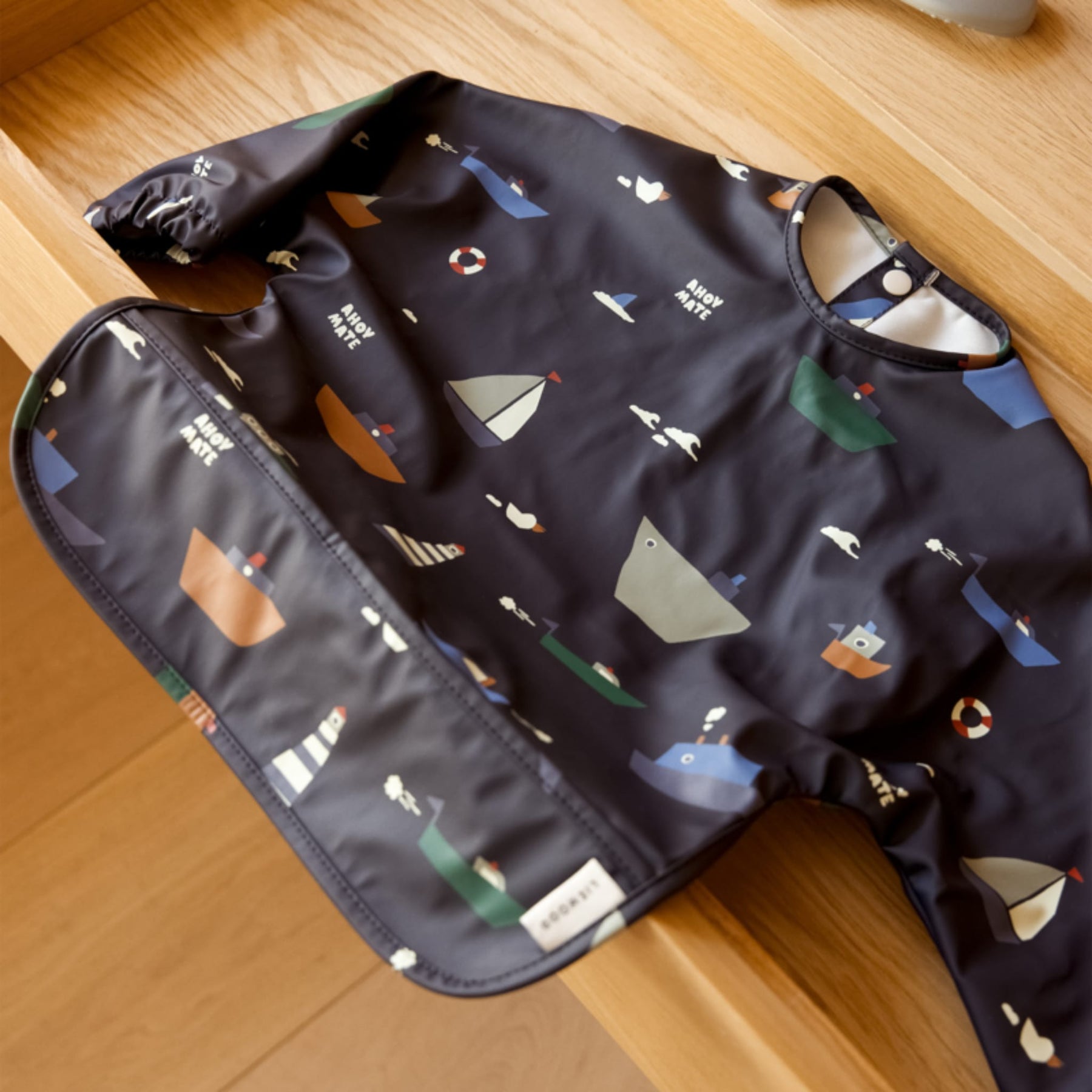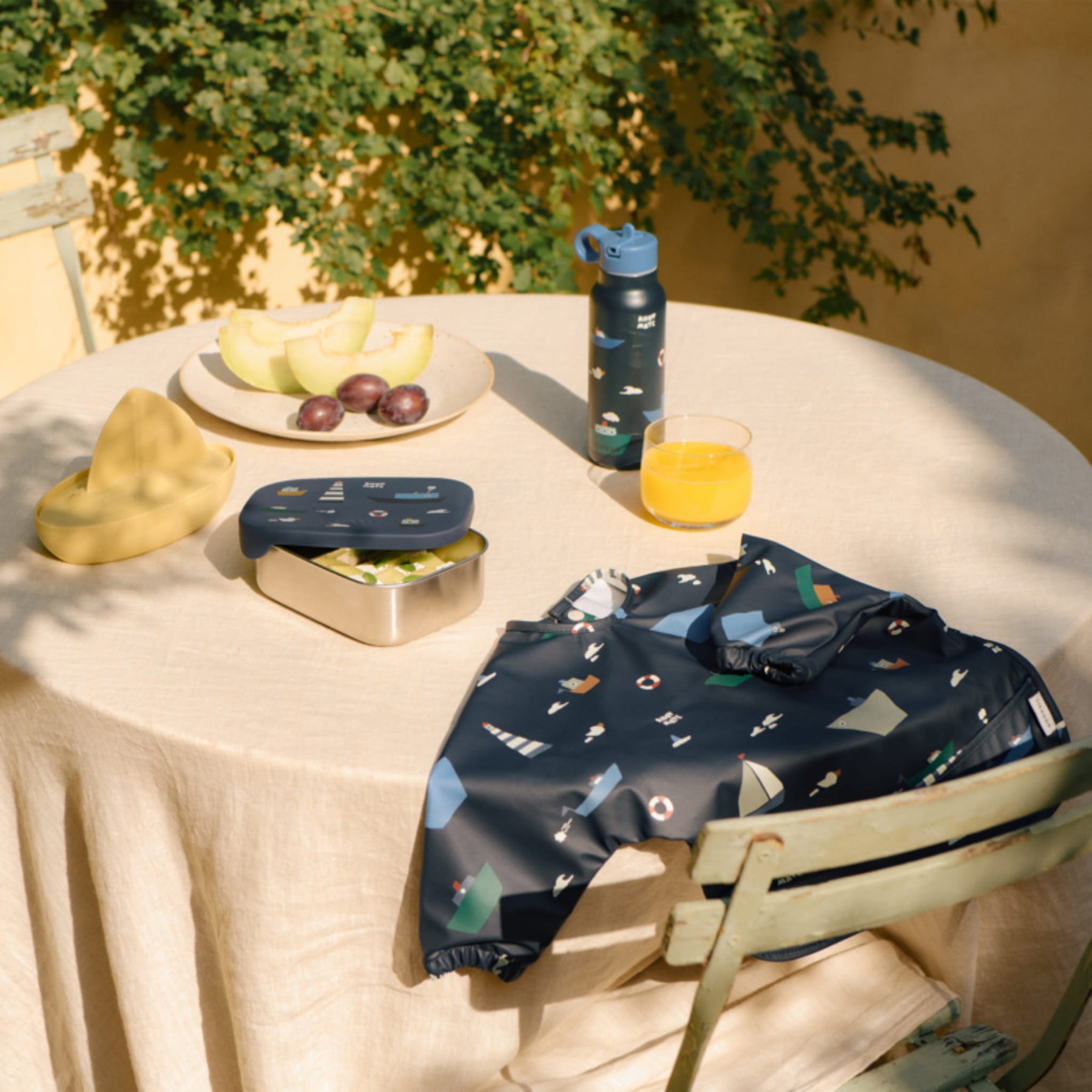Das leichte Ärmellätzchen ist ideal für kleine Feinschmecker, die beim Essen oder Basteln gerne aktiv sind. Die langen Ärmel mit elastischen Bündchen bieten Rundumschutz, während die große Vordertasche herunterfallende Krümel und Tropfen zuverlässig auffängt. Gefertigt aus 100 % GRS-zertifiziertem und OEKO-TEX®-geprüftem Polyester, ist es wasserdicht, angenehm leicht und pflegeleicht. Nach dem Gebrauch lässt es sich kompakt zusammenfalten – perfekt für unterwegs oder die Kita.