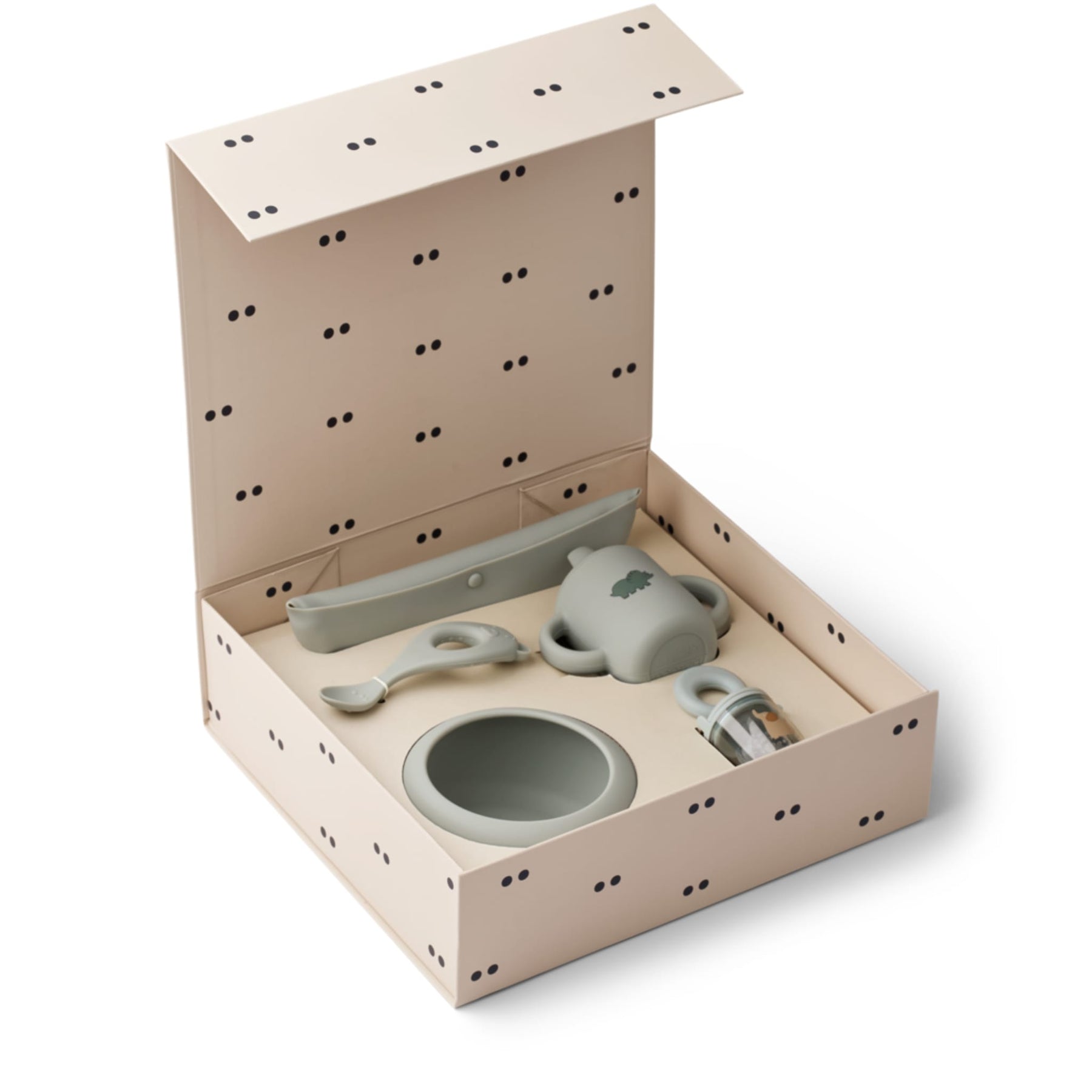 Mit dem liebevoll zusammengestellten Mileah Baby Mealtime Set von LIEWOOD beginnt das Abenteuer Essen auf praktische, sichere und charmante Weise. Dieses 5-teilige Set enthält: