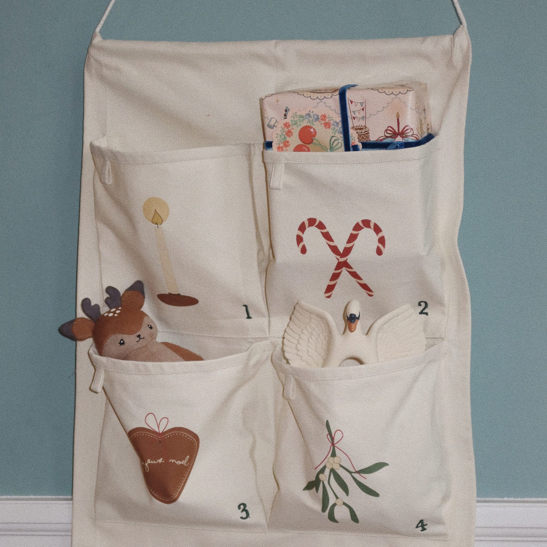Vorfreude funkelnd verpackt: Mit dem Adventskalender "Noel Seedpearl" von Konges Sløjd erwartet Ihr Kind jeden Tag eine neue Überraschung! Lustige Kleinigkeiten, Süßigkeiten, Lebkuchen oder lange gewünschte Geschenke werden Ihrem Kind bestimmt viel Freude und Überraschungsmomente bereiten. Der Kalender mit 24 Taschen zum Befüllen sorgt für große weihnachtliche Vorfreude und zeigt die verbleibenden Tage bis Weihnachten an. So kann Ihr Kind jeden Tag bis Heiligabend ein neues Geschenk aus der Tasche auspacken. Der praktische Adventskalender kann jahrelang verwendet werden, da er aus hochqualitativer Bio-Baumwolle hergestellt wurde und zeitloses Design ausströmt. Er verfügt über eine Schnur zum Aufhängen und ist zugleich eine entzückende Wanddeko, die in jedem stilvollen Zimmer wunderbar kombinierbar ist. Entdecken Sie im Adventskalender jeden Tag, was die Freude steigern mag!