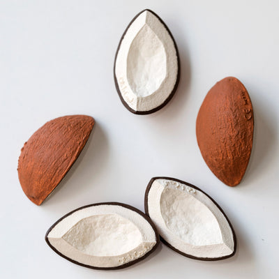 Das süße und lecker aussehende Badespielzeug „Coco The Coconut” von Oli&Carol ist ein zauberhaftes Babyspielzeug, das aus 100% natürlichem Kautschuk vom Hevea-Baum hergestellt wird. Das schadstofffreie Badespielzeug ist mit natürlichen Farben handbemalt, womit es sowohl für den richtigen Spielspaß in der Badewanne, als auch für das Zahnen geeignet ist. Die sanfte Kokosnuss lässt sich leicht greifen und ist ideal für die Händchen ihres Babys. Als Zahnenhilfe wirkt es außerdem besonders beruhigend auf das Zahnfleisch und fördert gleichzeitig die Feinmotorik. Das biologische Gummispielzeug ist aus einem Stück gefertigt und hat keine Löcher, um die Entstehung von Bakterien im Inneren zu verhindern. Perfekt zum Verschenken als Badespielzeug, Zahnenhilfe oder als Dekoration!