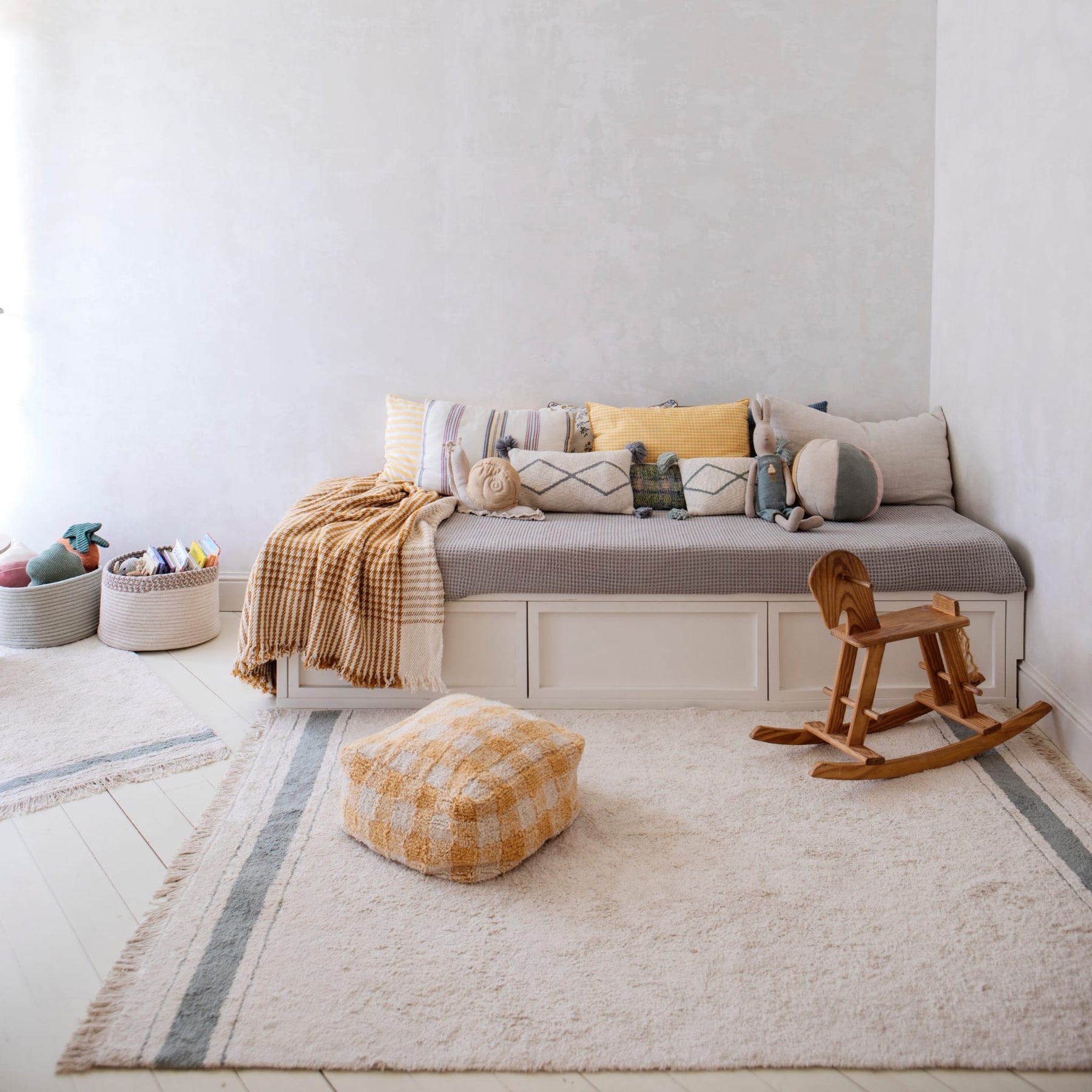 Das hübsche und gemütliche Sitzkissen für Kinder "Vichy Honey" von Lorena Canals bietet eine weiche Sitzfläche im quadratischen Design und ist genau das Richtige für Kinderzimmer. Der Bezug besteht aus Baumwolle und ist zum Waschen durch einen Reißverschluss abnehmbar. Die Füllung besteht aus Styroporperlen, was es zum Sitzen sehr komfortabel macht. Ein vielseitiger Hocker dient als zusätzliche Sitzgelegenheit zum Entspannen oder kann als Teil eines fantasievollen Spiels genutzt werden. Mit klassischem Vichy-Muster ist er ein Highlight in jedem Kinderzimmer und seine Vintage-Töne machen auch vor dem Kinderzimmer nicht Halt. Als dekoratives Detail sieht er imSpielzelt oder in der Kuschelecke niedlich aus, sorgt für Gemütlichkeit und gibt dem Kinderzimmer ein Gefühl von Geborgenheit. Das Sitzkissen für Kinder “Vichy Honey” wird sicher das Lieblingsmöbelstück Ihres Kindes, das dem Kinderzimmer einen sehr originellen Touch verleiht.