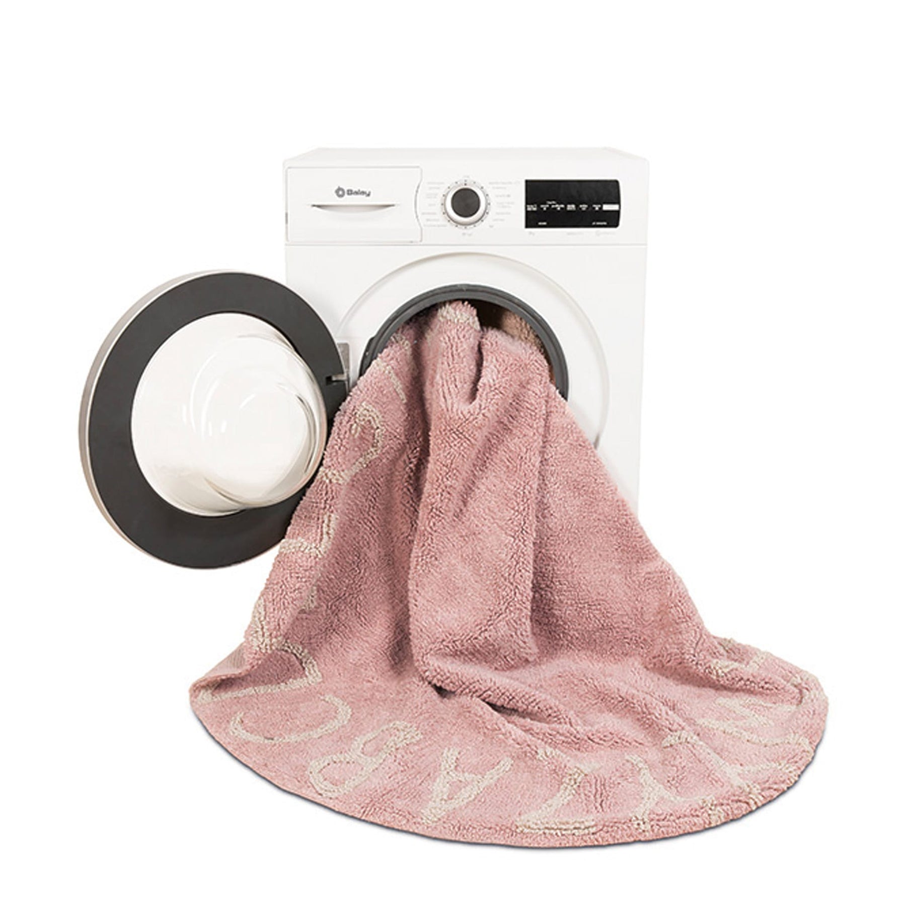 Waschbarer Baumwollteppich rund “ABC Vintage Nude-Natural” 150 cm