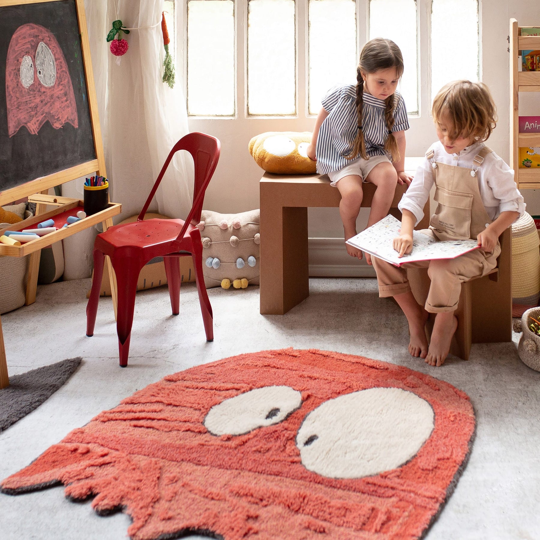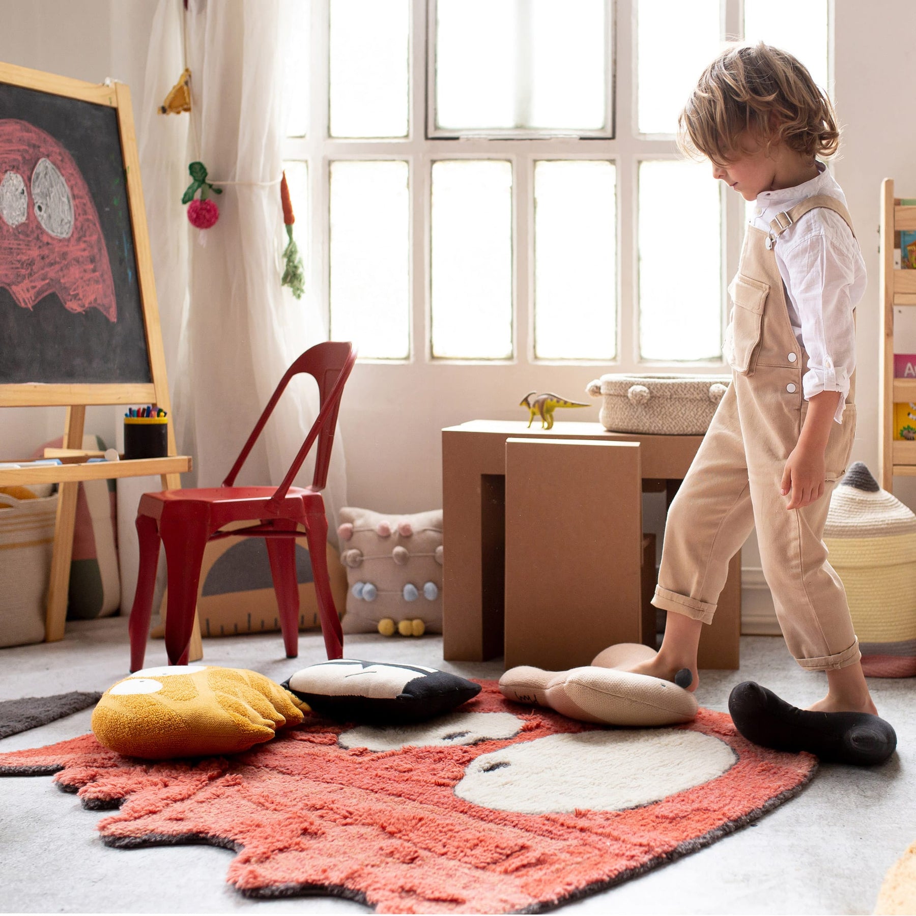 Mit dem maschinenwaschbaren Wollteppich “Ghosty” von Lorena Canals und Edgar Plans kommt der urbane künstlerische Faden in das Kinderzimmer Ihres Kindes! Als wunderschönes dekoratives Detail passt der lustige Teppich in der schönen rot-orangen Farbe in jedes Zimmer des Hauses. Der multifunktionale, interessante und äußerst praktische Teppich bietet viele Einsatzmöglichkeiten. Er eignet sich als Spielmatte, als dekoratives Detail oder als Vorleger vor dem Bett. Er besteht aus 100% Wolle, was ihn extrem weich und warm und somit ideal für kalte Tage macht. Das Teppichunikat “Ghosty” wurde komplett in Handarbeit hergestellt und schafft eine frische und angenehme Atmosphäre im Raum. Der hochwertige Teppich hat eine sehr hohe Langlebigkeit und ist einer der haltbarsten Teppiche auf dem Markt. Wenn der Teppich mit dem Ghosty Kissen kombiniert wird, erhält der Raum ein kompaktes künstlerisches Flair.