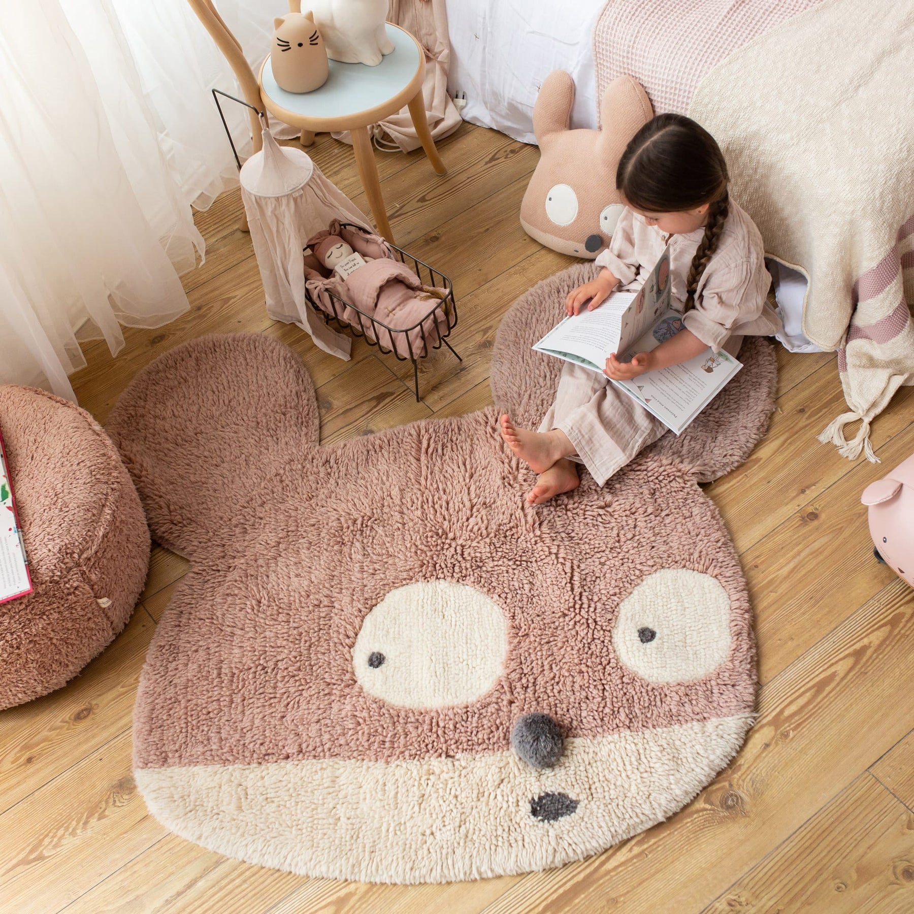 Waschbarer Wollteppich “Miss Mighty Mouse” 100 x 120 cm
