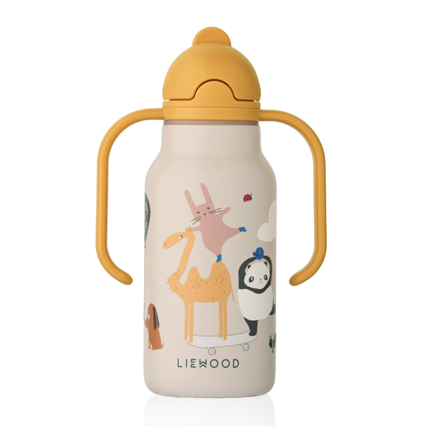 Die Kimmie Wasserflasche von Liewood wurde speziell für Kleinkinder entwickelt, die gerade lernen, selbstständig zu trinken. Mit ihren zwei seitlichen Griffen ist sie besonders leicht zu halten. Der integrierte Pop-up-Strohhalmdeckel macht das Trinken spielend einfach. Hergestellt aus 80 % recyceltem Edelstahl, ist sie nicht nur robust und hochwertig, sondern auch nachhaltig. Ideal für unterwegs – ob im Alltag, Kindergarten oder bei Ausflügen.