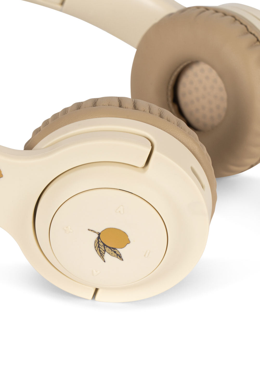 Die kabellosen Bluetooth-Kopfhörer von Konges Sløjd kombinieren modernen Klangkomfort mit einem verspielten Lemon- oder Cherry-Design, das kleine Musikliebhaber begeistert.