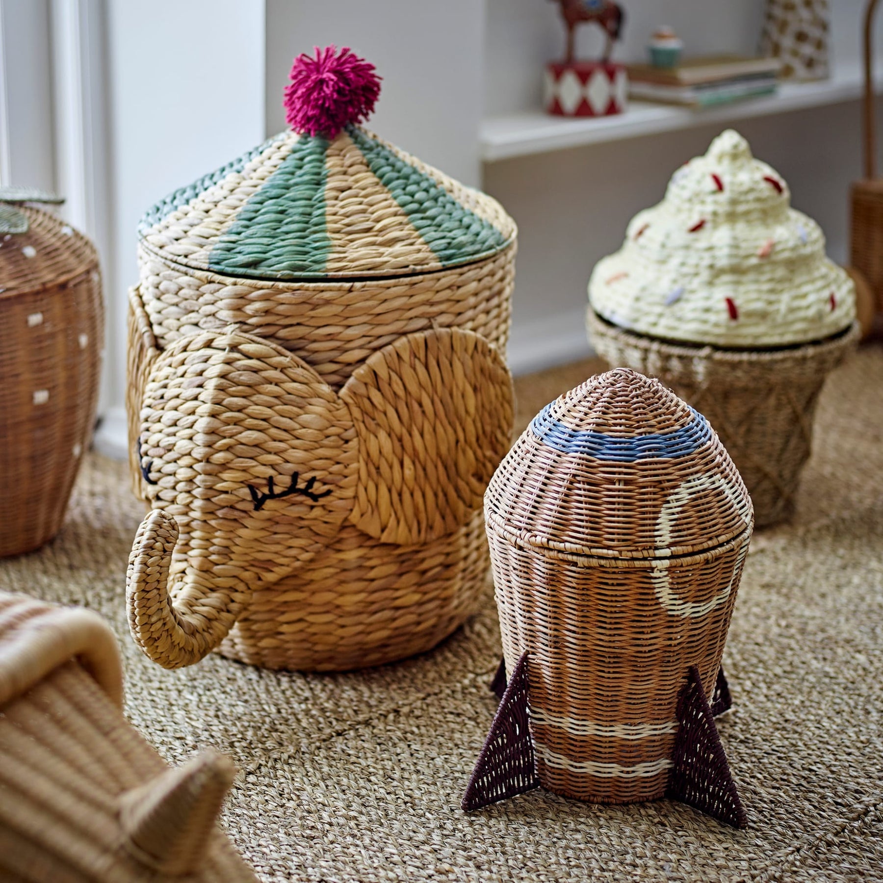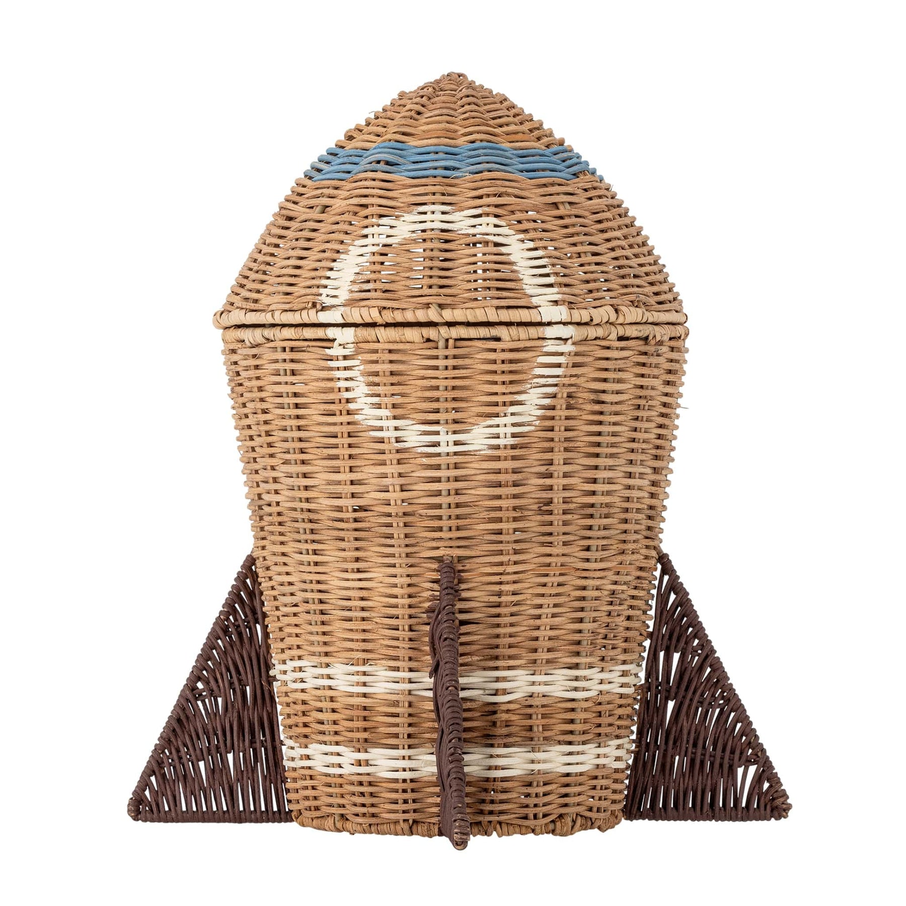 Der Space Korb mit Deckel von Bloomingville MINI ist ein echtes Highlight im Kinderzimmer. Handgeflochten aus Rattan und in der Form einer charmanten Rakete gestaltet, vereint er fantasievolles Design mit praktischer Funktionalität. Der dekorative Korb bietet ausreichend Platz zur Aufbewahrung von Spielzeug und regt gleichzeitig die Fantasie kleiner Astronauten an.