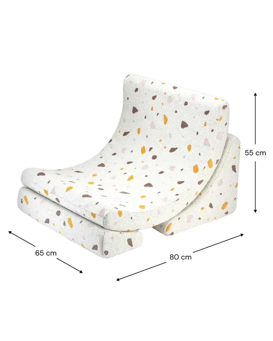 Der Wigiwama Moon Kindersessel vereint durchdachtes Design mit spielerischer Funktionalität und wird schnell zum Lieblingsstück im Kinderzimmer. Mit seiner dreiteiligen, klappbaren Konstruktion lässt sich der Sessel im Handumdrehen in eine bequeme Liegefläche oder eine kreative Spiellandschaft verwandeln – perfekt zum Lesen, Entspannen oder fantasievollen Spielen.