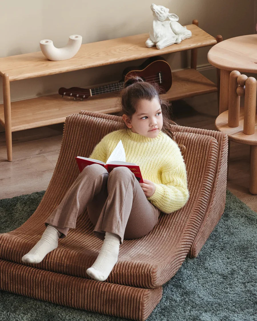 Der Wigiwama Moon Kindersessel vereint durchdachtes Design mit spielerischer Funktionalität und wird schnell zum Lieblingsstück im Kinderzimmer. Mit seiner dreiteiligen, klappbaren Konstruktion lässt sich der Sessel im Handumdrehen in eine bequeme Liegefläche oder eine kreative Spiellandschaft verwandeln – perfekt zum Lesen, Entspannen oder fantasievollen Spielen.