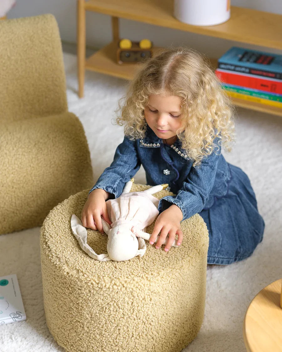 Der Wigiwama Sitzpuff ist ein vielseitiger Alleskönner für das Kinderzimmer: Ob als bequeme Fußstütze, zusätzliche Sitzgelegenheit oder Baustein für fantasievolle Spielhöhlen – dieser leichte und weiche Pouf ist immer zur Stelle.