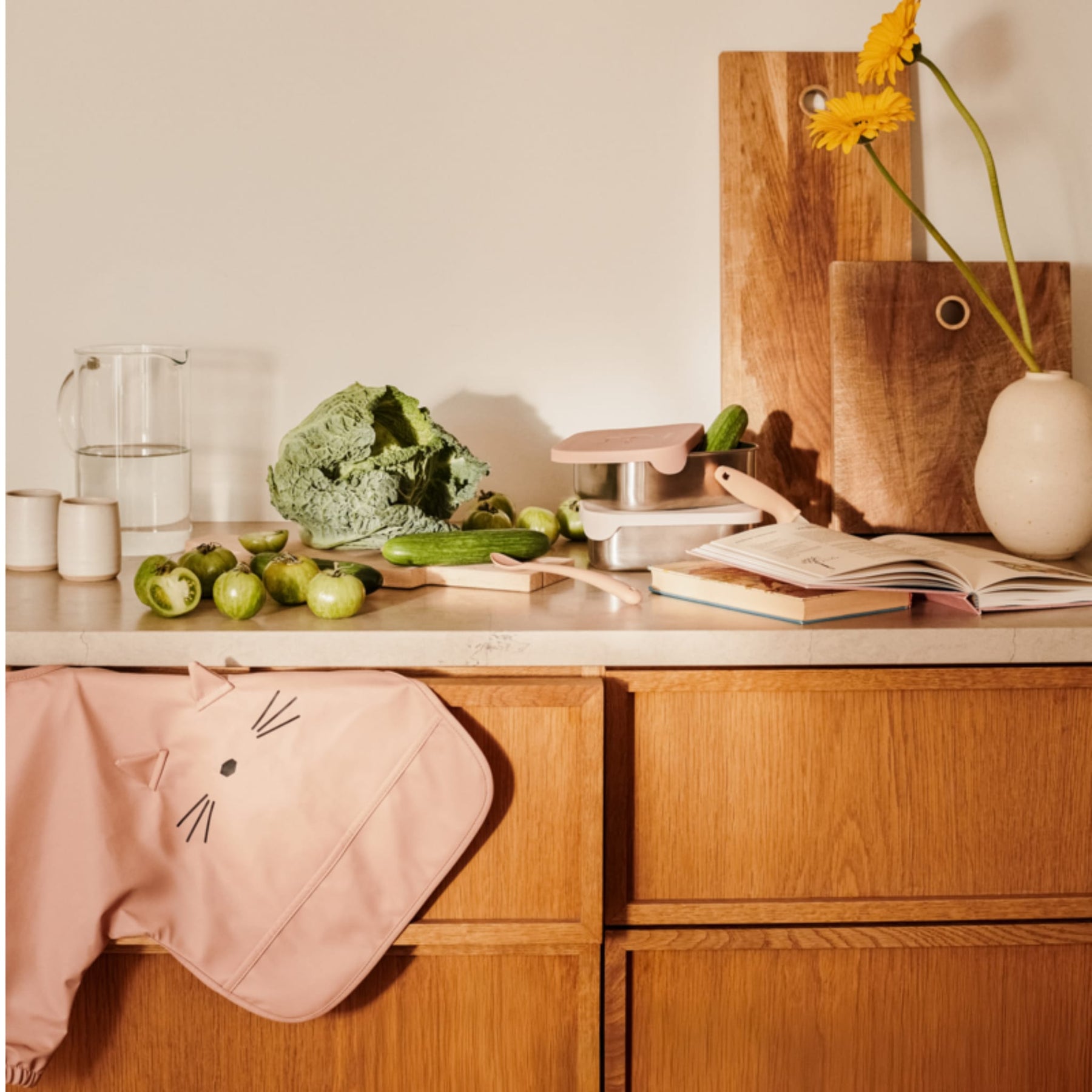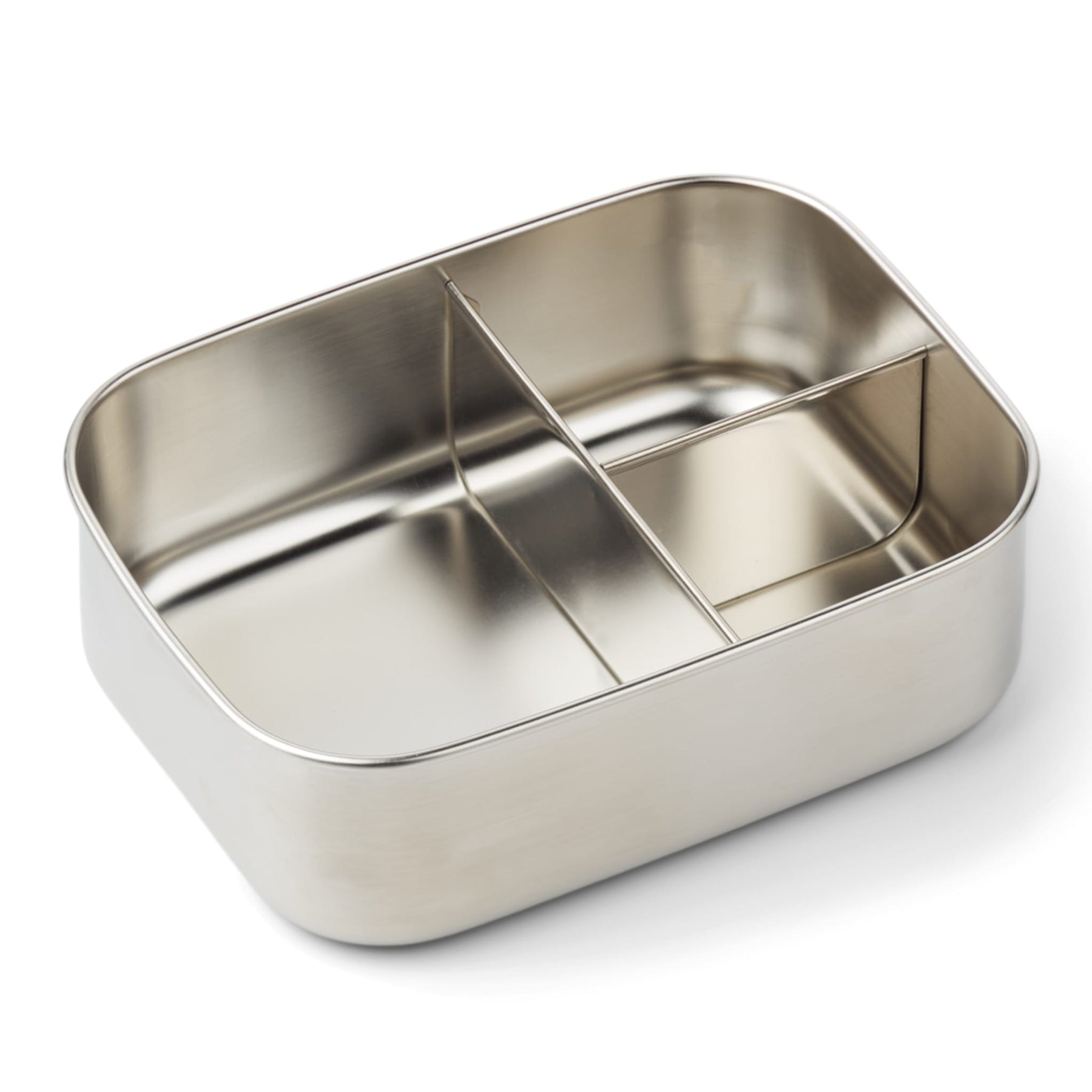 Eine Brotdose für den Kindergarten, die Schule oder Reisen ist ein alltäglicher Begleiter für jedes Kind unabhängig von seinem Alter. Die Vesperbox “Arthur Cat Dark Rose” von Liewood ist in drei praktische Fächer unterteilt, sodass sich das Pausenbrot besonders schön einrichten lässt. Mit verschiedenen Abteilungen z.B. für Salat, Früchte und Brötchen können Sie Ihrem Kind täglich ein abwechslungsreiches Menü anbieten. Die Lunchbox ist speziell für Kinder gestaltet und verbindet Silberchrom und Dunkelrosa zu einer bezaubernden Kombination. Auf dem Deckel prangt ein niedliches Katzenmotiv, das für extra Spaß und Freude beim Essen sorgt. Das Material ist genauso wertvoll wie das Design. Die Brotdose ist aus Edelstahl gefertigt und hat einen niedlichen Silikondeckel. Da sie keine Farbe und Gerüche vom Inhalt aufnimmt, eignet sie sich perfekt zur Aufbewahrung von Lebensmitteln.