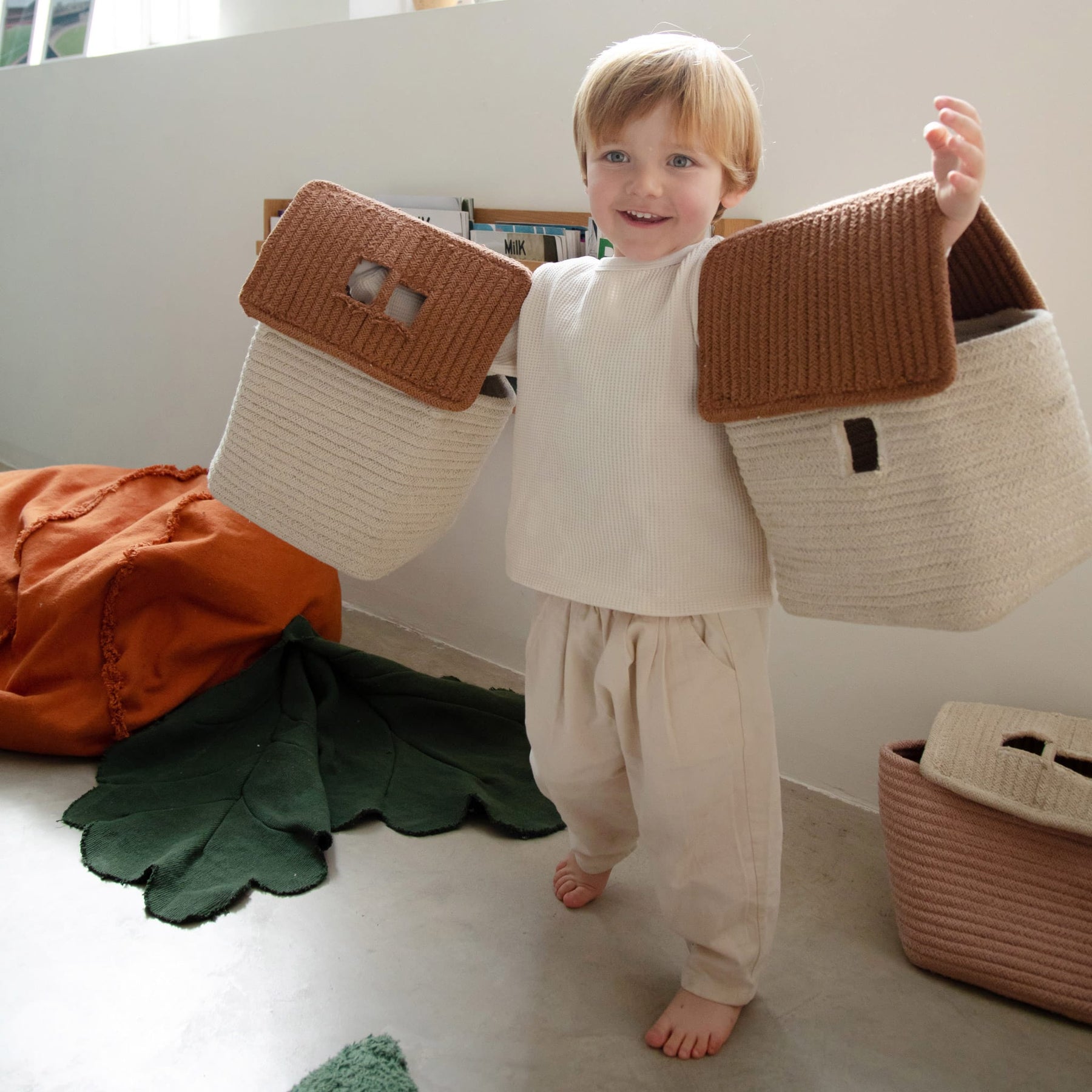 Eine imaginäre Stadt ohne niedliche praktische Häuser kann man sich nicht vorstellen! Der süße Aufbewahrungskorb in der Haus-Form ist für das Aufräumen und Aufbewahrung auf spielerische Weise bereit! Mit dem schönen urbanen Aufbewahrungskörbchen “House Toffee” von Lorena Canals wird die Ordnung schnell geschaffen. Die Aufbewahrungstasche aus Baumwolle ist für kleinere Kinderspielzeuge, Bücher, Kuscheltiere und Accessoires sehr gut geeignet! Das Körbchen ist auch für das fantasievolle Spielen entwickelt. Der Aufbewahrungskorb aus Baumwolle ist die märchenhafte und praktische Aufbewahrungslösung für jedes stilvolle Zimmer. Der hochwertige Aufbewahrungskorb hat hohe Langlebigkeit und schafft mit dem Baumwollspielteppich “Eco-City” und stilvollen Aufbewahrungsset “Truck” ein stattliches Flair im urbanen Kinderzimmer. Ein Supergeschenk für Kinder ab drei Jahren!