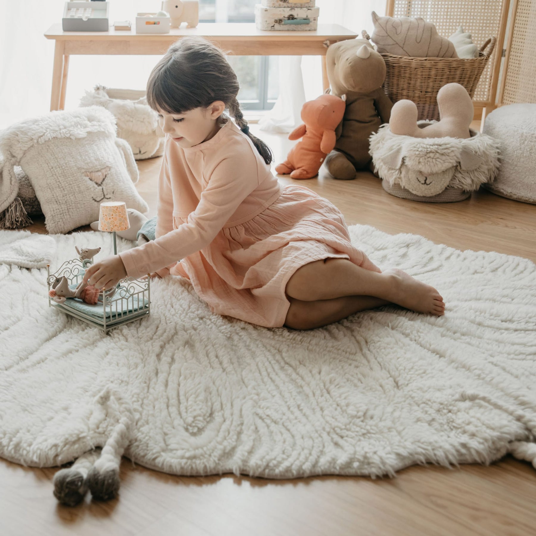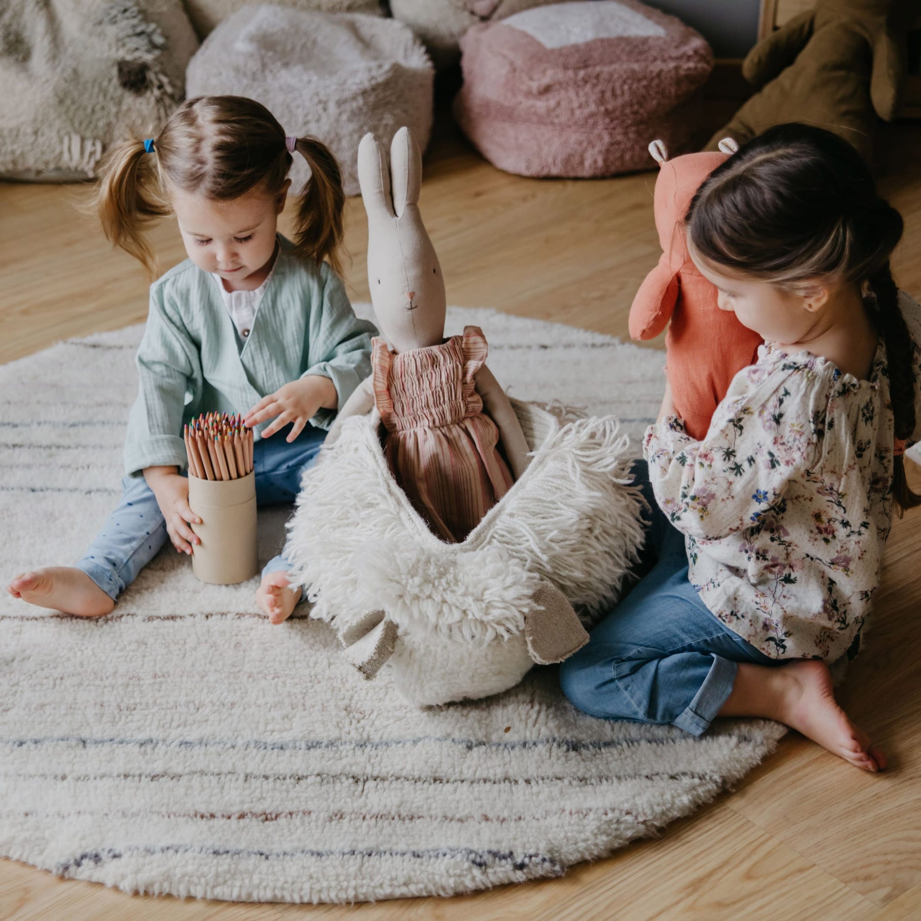Mäh, mäh, kleines weißes Schaf! Aufräumen und Aufbewahrung war noch nie so stilvoll! Mit dem schönen naturinspirierten Aufbewahrungskorb “Pink Nose Sheep” von Lorena Canals wird die Ordnung schnell geschaffen. Die kuschelweiche Aufbewahrungstasche aus 100% Wolle ist für kleinere Kinderspielzeuge, Kuscheltiere und Accessoires sehr gut geeignet! Der Korb enthält eine versteckte Baumwolltasche für das Lieblingsspielzeug oder eine andere beliebige Kleinigkeit. Der Aufbewahrungskorb aus Wolle ist eine märchenhafte und praktische Aufbewahrungslösung für jedes stilvolle Zimmer. Der hochwertige Aufbewahrungskorb hat sehr hohe Langlebigkeit wie der Wollteppich und das Dekokissen “Pink Nose Sheep”, die zusammen ein himmlisches Flair im Kinderzimmer schaffen. Ein Supergeschenk für Kinder ab drei Jahren!