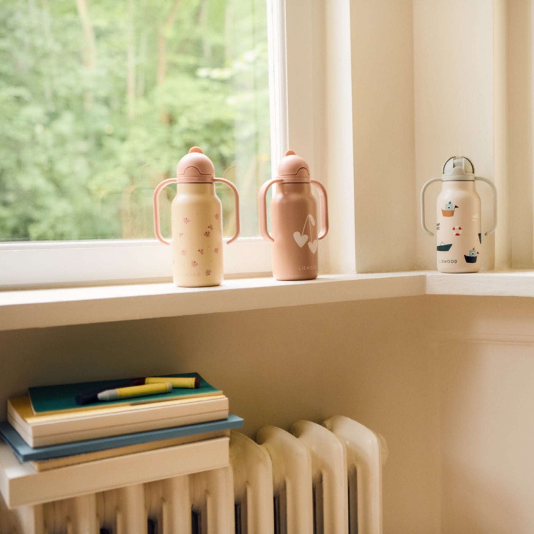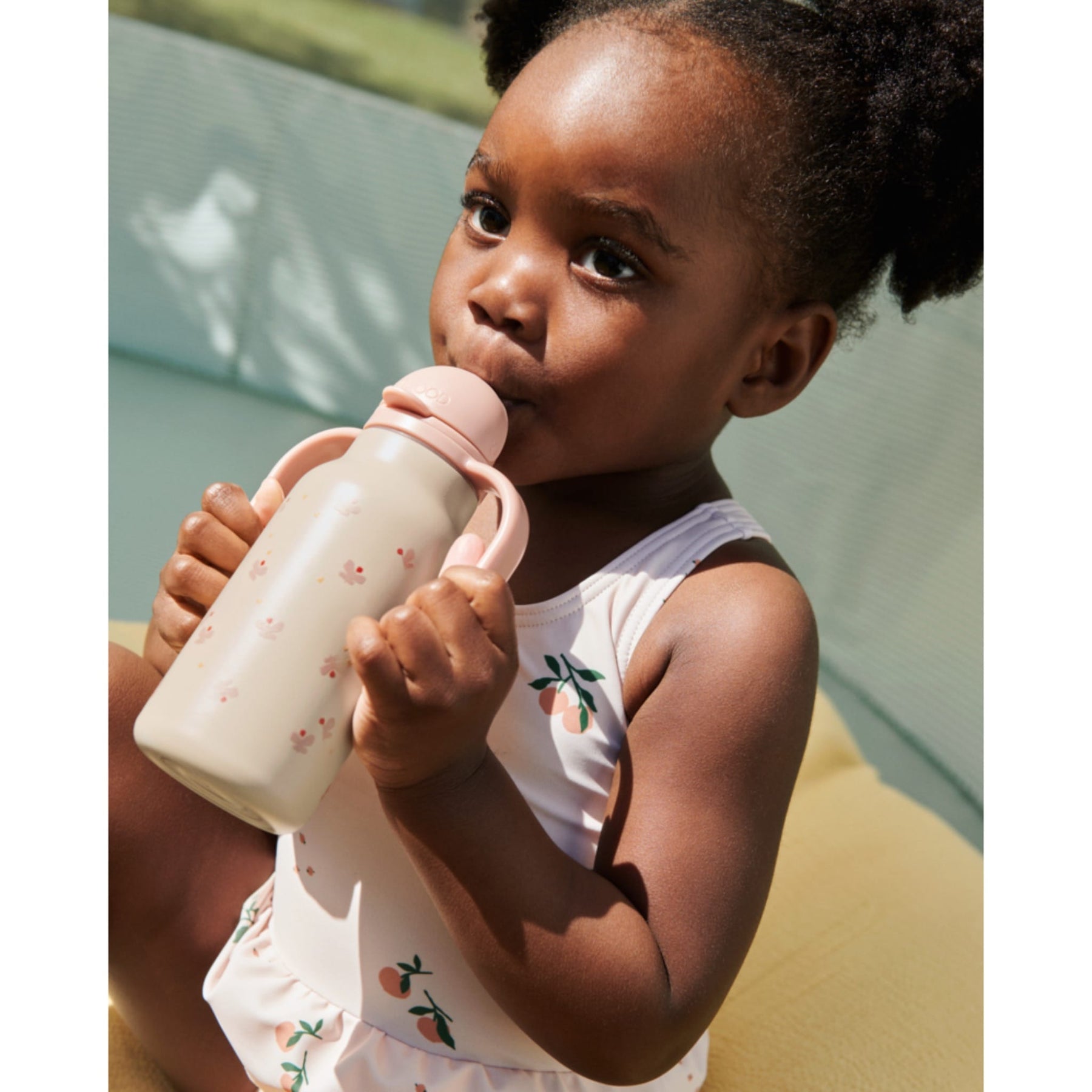 Die Kimmie Wasserflasche von Liewood wurde speziell für Kleinkinder entwickelt, die gerade lernen, selbstständig zu trinken. Mit ihren zwei seitlichen Griffen ist sie besonders leicht zu halten. Der integrierte Pop-up-Strohhalmdeckel macht das Trinken spielend einfach. Hergestellt aus 80 % recyceltem Edelstahl, ist sie nicht nur robust und hochwertig, sondern auch nachhaltig. Ideal für unterwegs – ob im Alltag, Kindergarten oder bei Ausflügen.