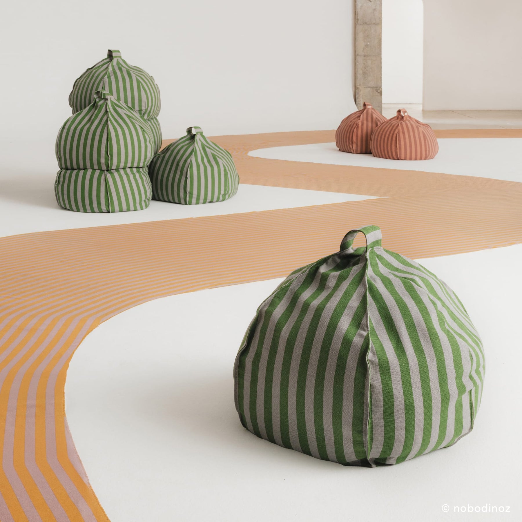Runder Sitzsack "Vibes Green Blue Stripes"