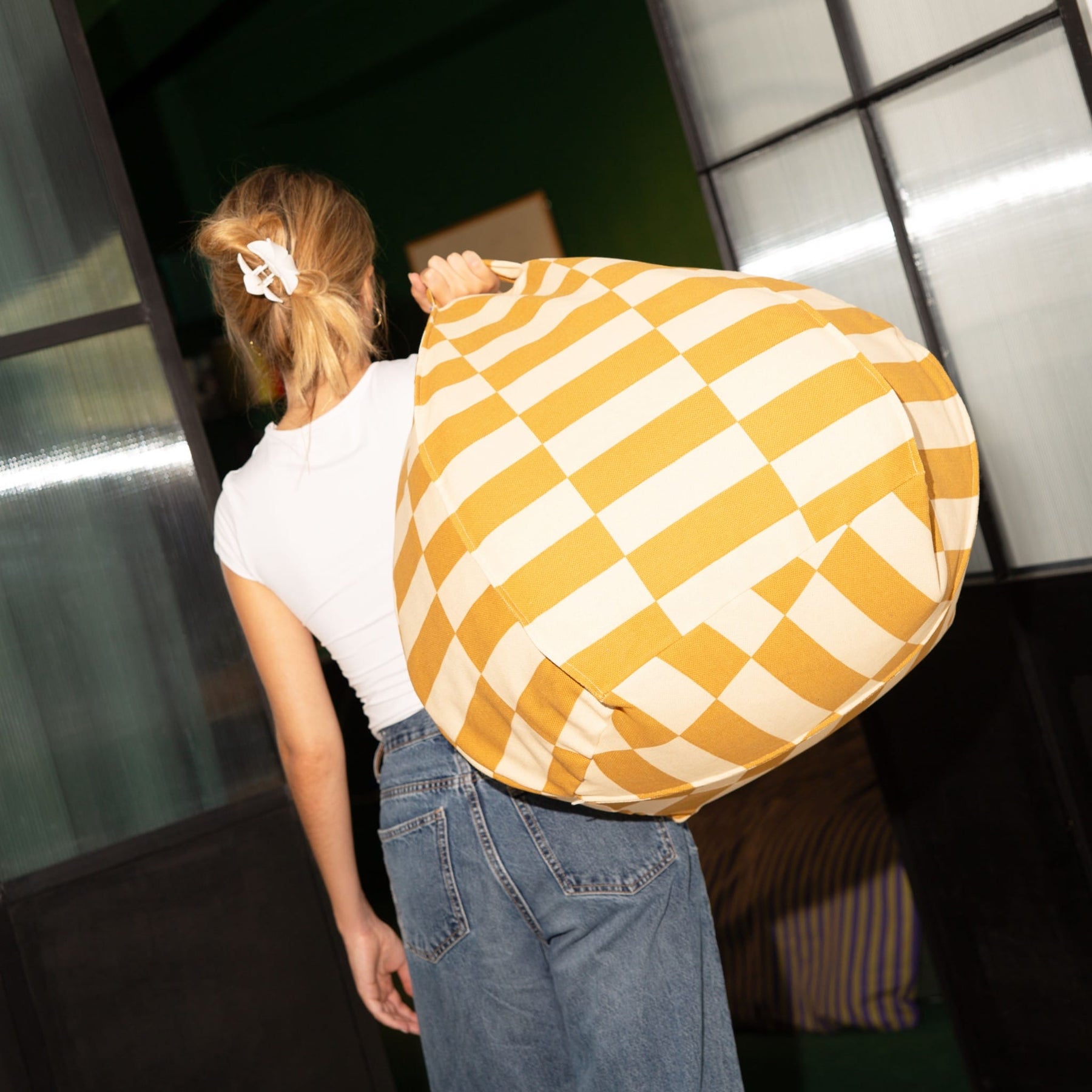 Runder Sitzsack "Vibes Mustard and Sand Tiles"