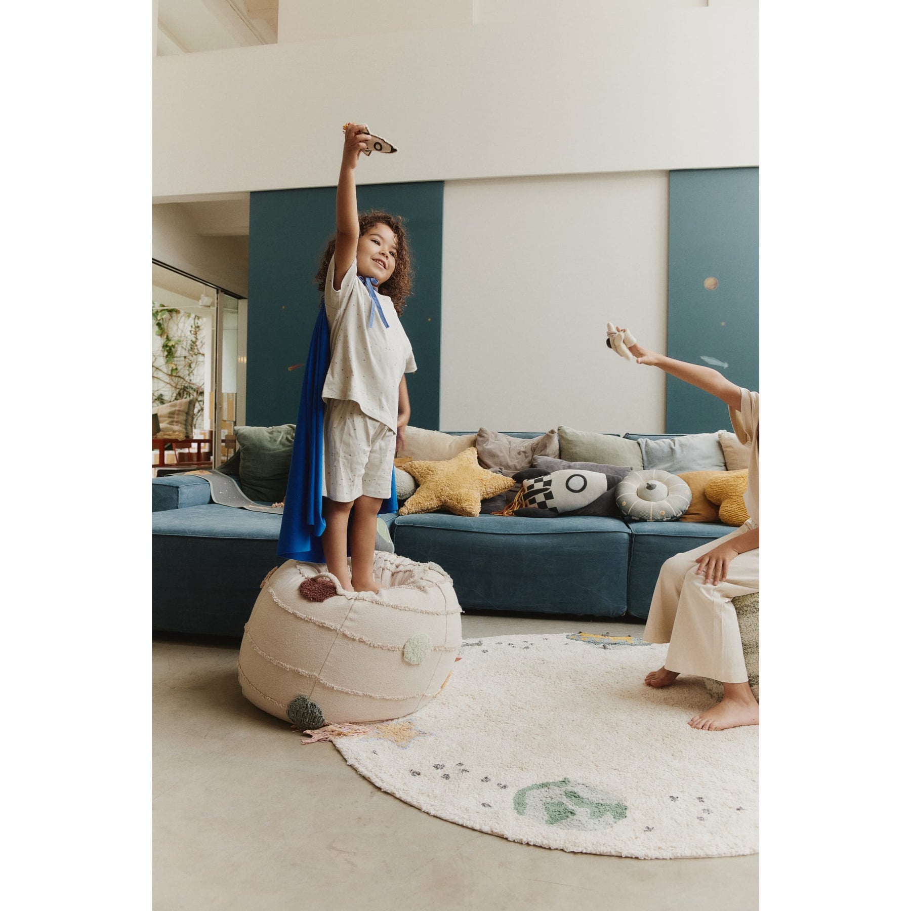 Startklar für die nächsten Abenteuer? Der Sitzpuff "Solar System" von Lorena Canals bietet kleinen Astronauten den perfekten Ort zum Entspannen und Spielen. Seine Farben sind inspiriert von den Planeten unseres Sonnensystems. Die Füllung aus weichen Polystyrolkügelchen passt sich flexibel an jede Sitzposition an und ermöglicht es Ihrem Kind, entspannt zu sitzen und zu spielen. Der praktische Reißverschluss ermöglicht eine einfache Reinigung. Der integrierte Griff macht den Transport kinderleicht, sodass Ihr kleiner Abenteurer den Sitzsack mühelos von einem Raum in den anderen tragen kann. Ob im Spielzimmer oder im Wohnzimmer, der Sitzsack "Solar System"  verwandelt jeden Raum in einen gemütlichen Rückzugsort, der sowohl Stil als auch Komfort bietet. Ideal für kreative Spielstunden und entspannte Pausen.