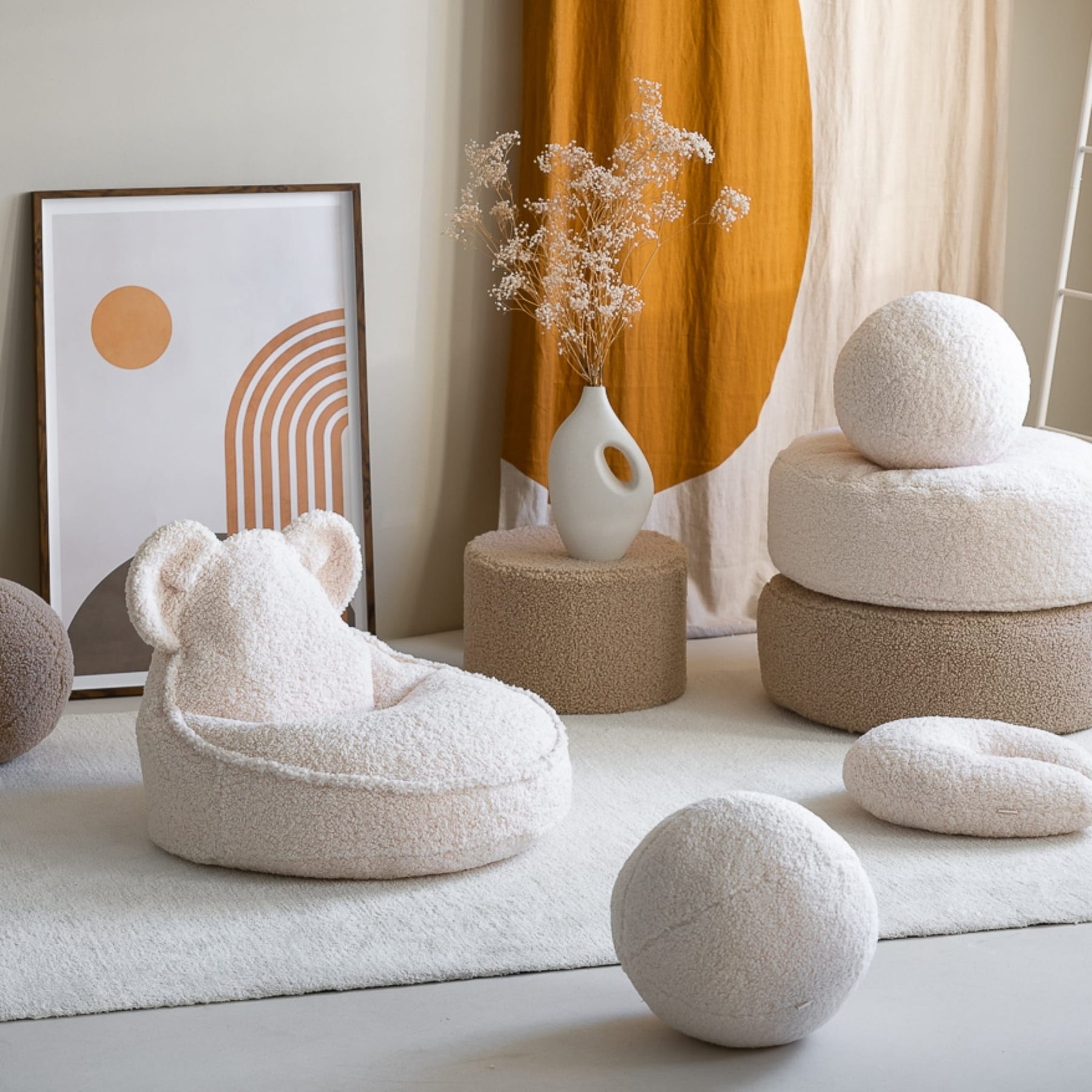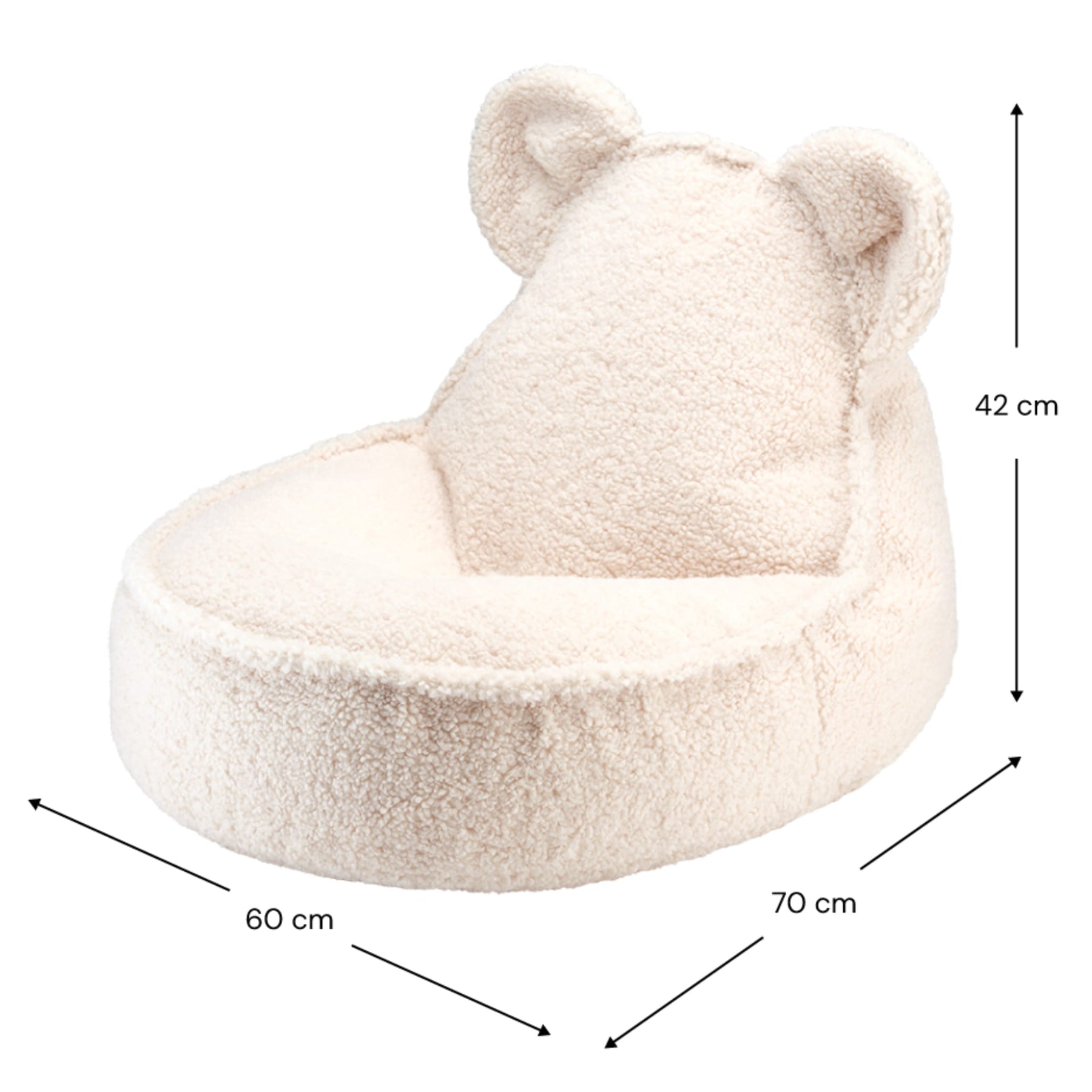 Der Teddy-Sitzsack bringt Wärme, Geborgenheit und eine Extraportion Gemütlichkeit ins Kinderzimmer. Mit seinem weichen, hochwertigen Material und den entzückenden kleinen Öhrchen ist er nicht nur ein absoluter Blickfang, sondern auch der perfekte Platz zum Lesen, Träumen und Entspannen nach einem aufregenden Tag.