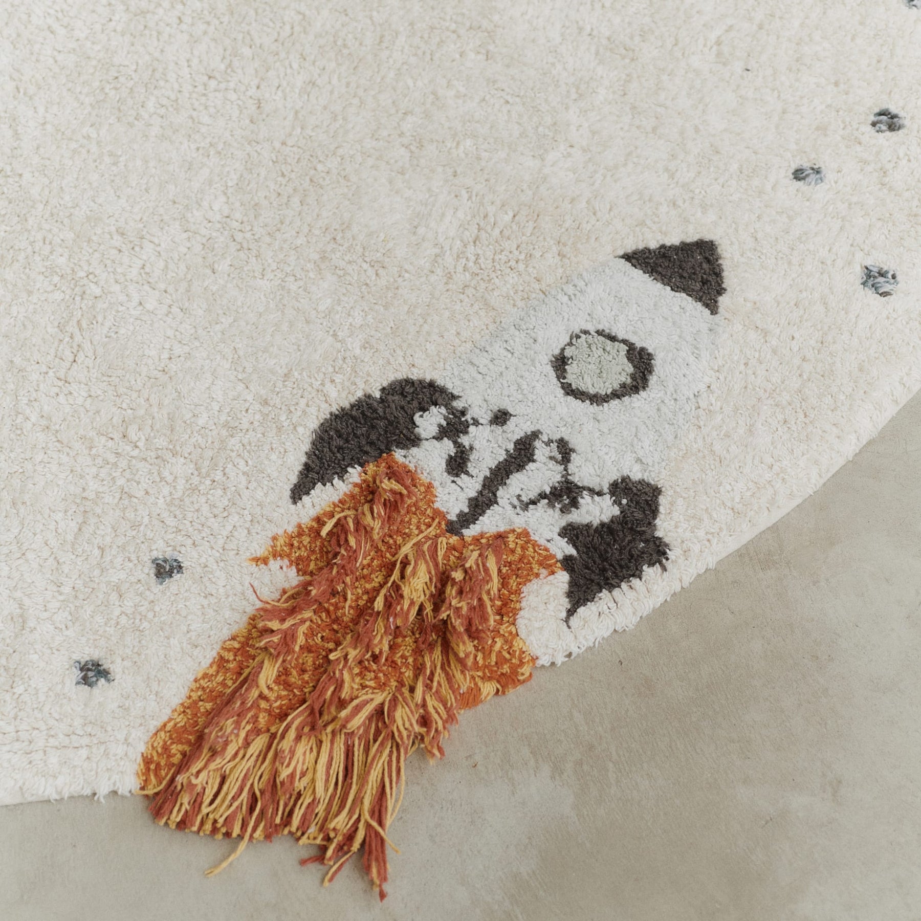 Der Spielteppich "Interstellar Journey" von Lorena Canals ist der ideale Begleiter für kleine Astronauten, die die Wunder des Universums entdecken möchten. Mit seinem runden Design und den Motiven von Raketen, Sternschnuppen und Planeten verwandelt dieser naturfarbene Teppich jeden Spielbereich in eine aufregende Raumstation. Um den Rand herum finden sich detailreiche Darstellungen von drei Planeten, einer Rakete mit längeren Fäden für die Flamme, einem Stern mit texturiertem Schweif und einem Raumschiff mit Kordel-Beinen. So sorgt der Teppich für kreativen Spielspaß und bringt einen kosmischen Touch in jeden Raum.