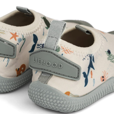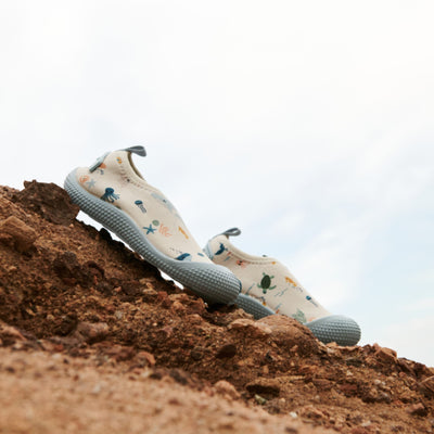 Die Badeschuhe für Kinder "Sanjia Sea Creature / Sandy" von Liewood vervollständigen das Bade-Outfit Ihres Kindes auf perfekte Weise. Sie eignen sich perfekt für den Strand, den Pool und Wasserspiele. Mit ihren flexiblen rutschfesten Sohlen bieten sie Ihrem Kind Sicherheit und Komfort beim Planschen. Ihr Neoprenoberteil ist wasserfreundlich und isolierend, während das flexible Design ein angenehmes Tragegefühl gewährleistet. Diese Schuhe machen das Spielen auf steinigen Stränden und rutschigen Flächen problemlos möglich. Ein Silikon-Patch mit Liewood-Logo an der Ferse verleiht dem Schuh einen besonderen Touch. Die Einlegesohle bietet außerdem Fußgewölbestütze und Polsterung für maximalen Komfort.