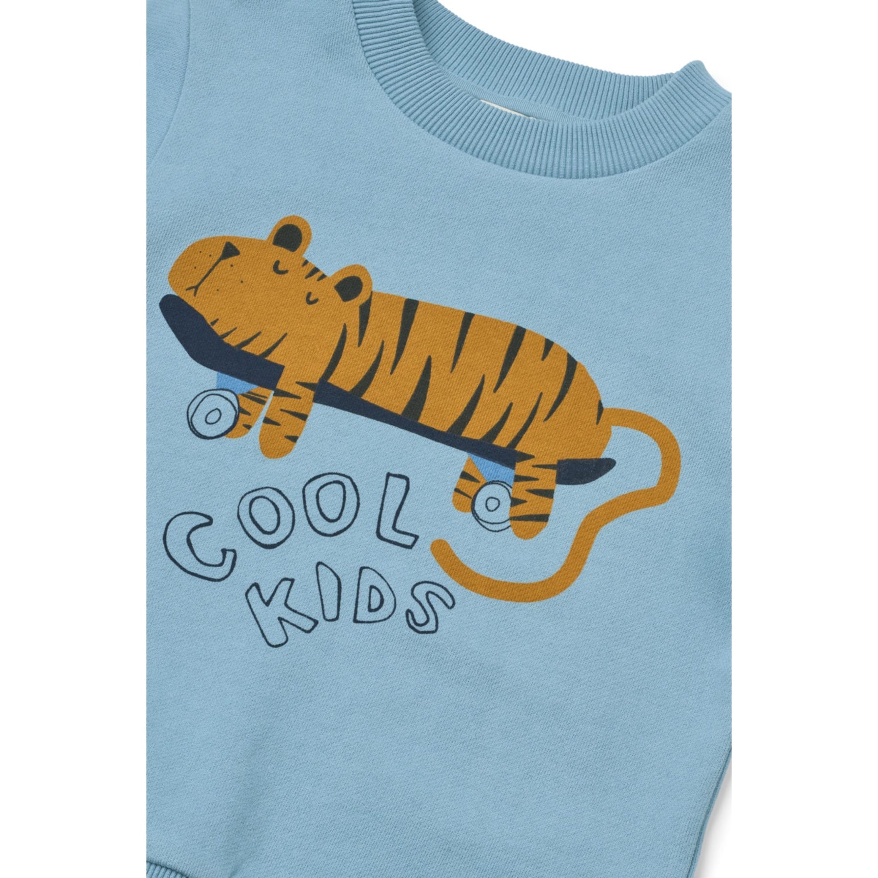 Das THORA Sweatshirt von Liewood ist der perfekte Begleiter für entspannte Tage zuhause oder kleine Abenteuer an der frischen Luft. Hergestellt aus 100 % GOTS-zertifizierter Bio-Baumwolle in weicher French-Terry-Qualität, bietet es ein angenehmes Tragegefühl und viel Bewegungsfreiheit. Der lässige Schnitt mit überschnittenen Schultern, der klassische Rundhalsausschnitt und süße Prints machen dieses Sweatshirt zu einem Must-have für den Kinderkleiderschrank. Ideal für den Alltag und jede Jahreszeit.